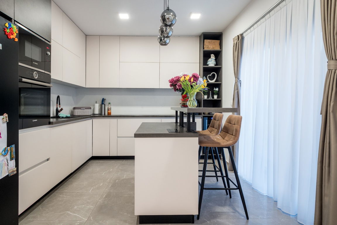 Na prvom katu je smještena kuhinja s blagovaonicom i dnevnim boravkom, kupaonica i garderoba.