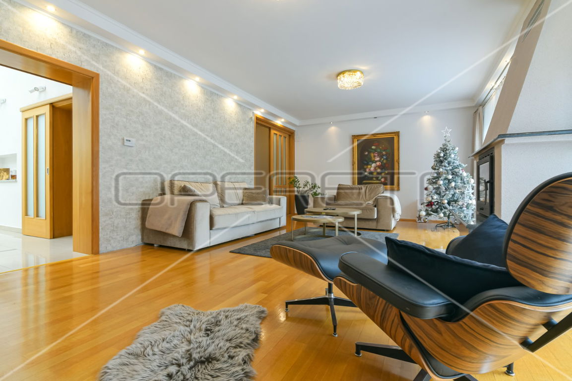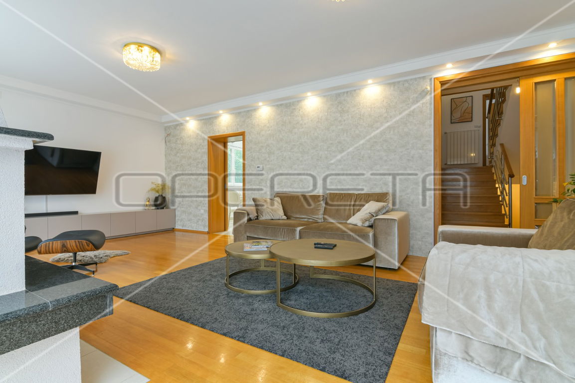 Iznajmljuje se kuća, dvojni objekt, 2023. adaptirana i kompletno namještena i opremljena. Ima okućnice ispred i iza kuće, parking natkriveni i nenatkriveni te garažu. U prizemlju se nalazi toalet, sauna, direktna povezanost s garažom, na polu etaži se nalazni dnevni boravaka s izlazom na terasu i vrt te blagovaonica i kuhinja, na drugoj polu etaži smještena je soba s kupaonicom, ormarom te izlazom na balkon, na trećoj polu etaži smještene su dvije sobe te kupaonica.