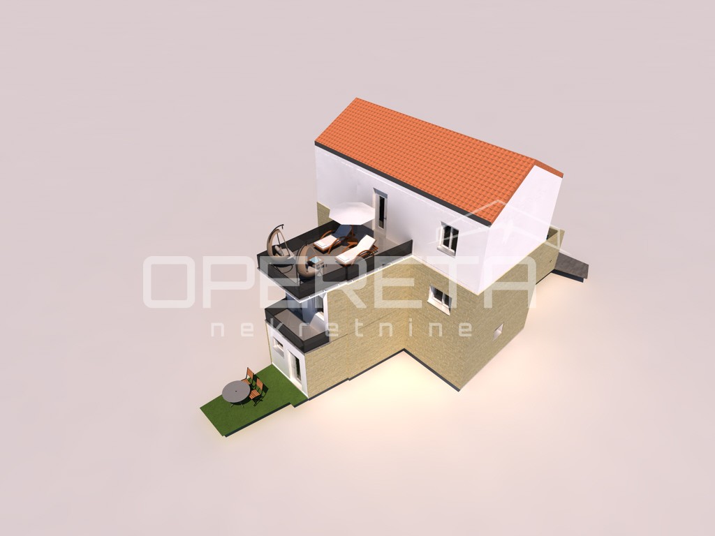 Dodatno: podno grijanje s dizalicom toplinske energije, kvalitetna stolarija, bazen ispred kuće.