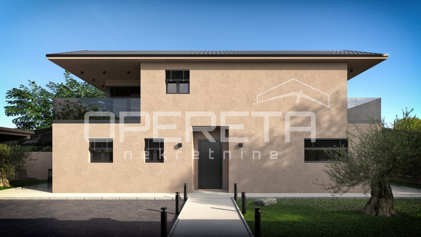 Kuća ukupne površine 118 m² prostire se na dvije etaže. U prizemlju, površine 66 m², nalazi se prostrani open-space prostor koji objedinjuje kuhinju, blagovaonicu i dnevni boravak, s velikom staklenom stijenom koja omogućuje obilje prirodnog svjetla i izlaz u vrt. Na istoj etaži smještena je jedna spavaća soba s vlastitom kupaonicom, gostinjski WC te praktična praonica.