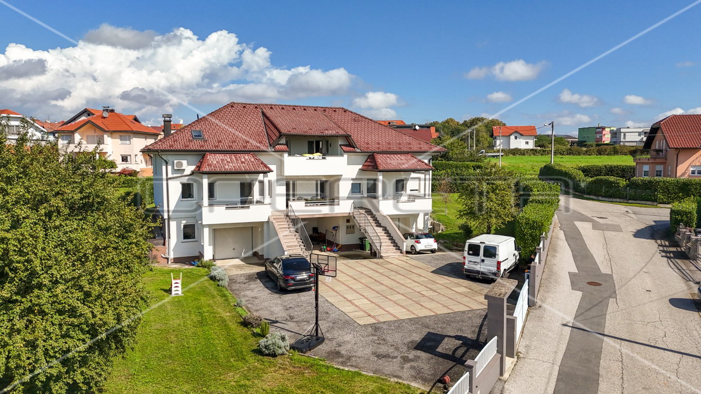 U Sesvetama, izdvojene od glavne ceste i buke, na velikoj parceli od 1.395 m², smjestila se kuća s 4 stana i 2 prostrane garaže.
