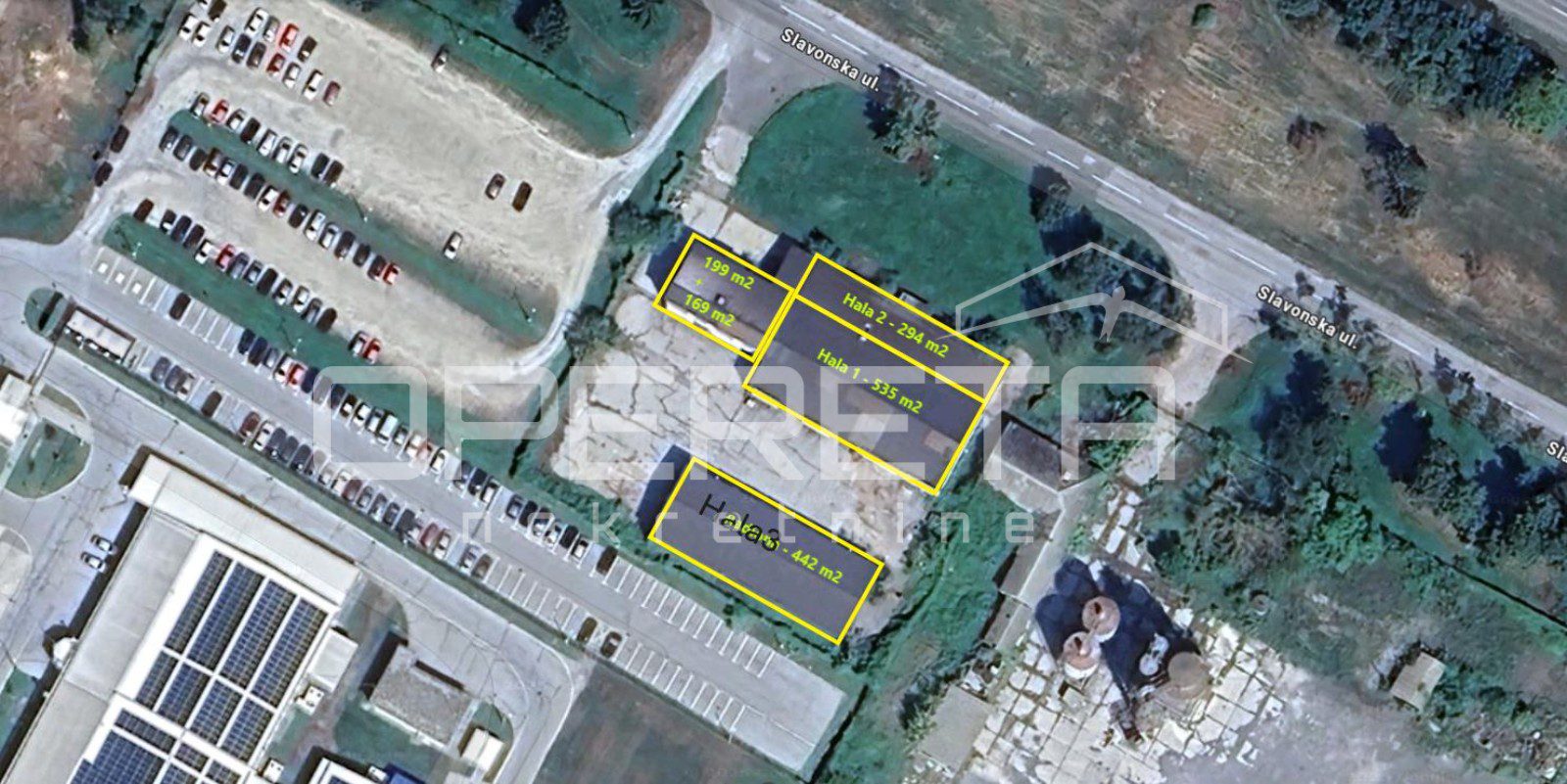 Daje se u zakup funkcionalan poslovni kompleks na izuzetnoj lokaciji u gospodarskoj zoni Kutine. Objekt se nalazi na parceli od 4.191 m² te obuhvaća upravnu zgradu i tri hale/radione, ukupne površine 1.639 m². Upravna zgrada ima prizemlje i kat, s ukupno osam ureda, dvije čajne kuhinje, garderobama, sanitarnim čvorovima i kotlovnicom. Hale su površine 535 m², 294 m² i 442 m², visine 6,7–8,7 m. Hala 3 opremljena je mosnom kranskom dizalicom nosivosti 5T, a sve hale imaju velike klizne ulaze pogodne za razne vrste djelatnosti. Objekt ima sve potrebne priključke, uključujući električnu energiju snage 250 kW. Lokacija je izvrsna – u neposrednoj blizini južnog ulaza u Kutinu s autoceste Zagreb–Slavonski Brod te nadomak centra grada.