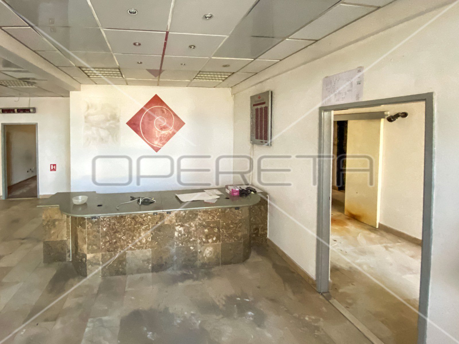 Nalazi se u prizemlju poslovno-stambene zgrade s direktnim pristupom s glavne ulice i kompletno ostakljenim pročeljem.