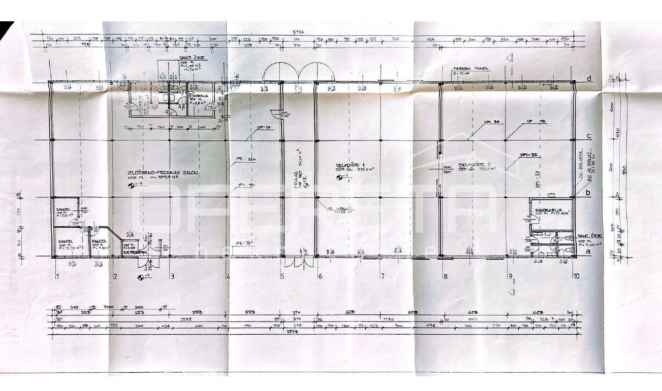 Na frekventnoj lokaciji u Osijeku se prodaje poslovni prostor zamišljen kao prodajni salon i skladište. Prostire se na dvije etaže tlocrtne površine 481m2. Završenost objekta je na 60%. Armirano-betonska ploča, čelična konstrukcija (30 tona čelika), zapremnina struje 10kw (mogućnost preko 50kW), 3 brojila za vodu, ulaz za kamione. U dvorištu je osmišljen parking. Na oglašenu cijenu se plaća PDV.
