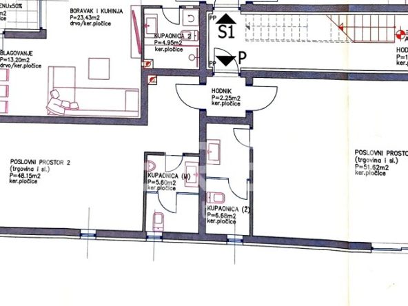 Poslovni prostor površine 141,50 m², smješten u podrumu austrougarske zgrade s prijelaza iz 19. u 20. stoljeće.