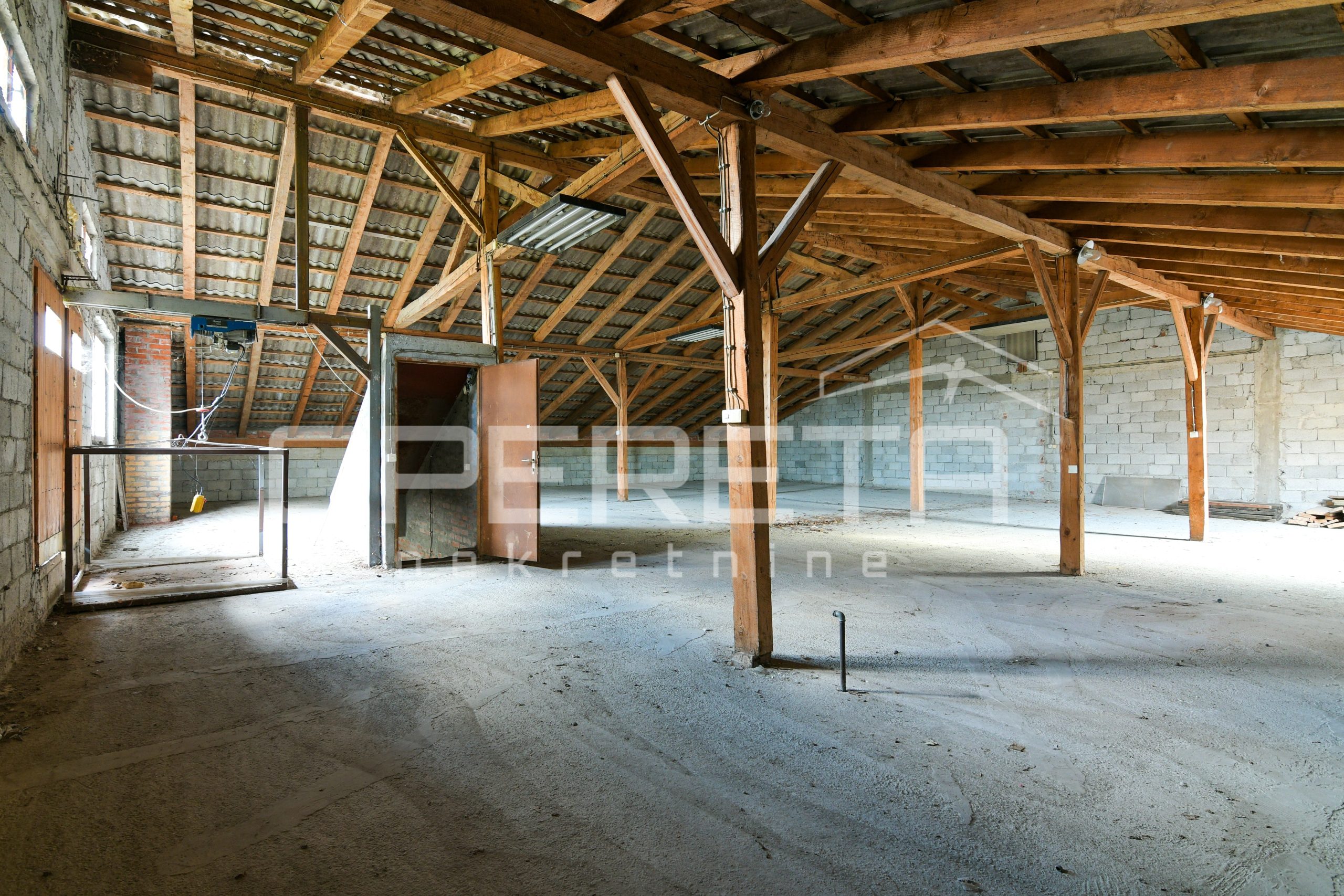 U zakup se daje samostojeći objekt pogodan za mehaničarsku radionicu, skladištenje robe i sl. Sastoji se u prizemlju od skladišnog prostora dimenzija 18mx16m visine 5,20m, sanitarnog čvora, alatnice dok se na prvom katu nalazi ured i skladišna prostorija te na zadnjoj etaži je tavanski prostor istih dimenzija kao i prizemlje s dizalicom nosivosti do 1 tone.
