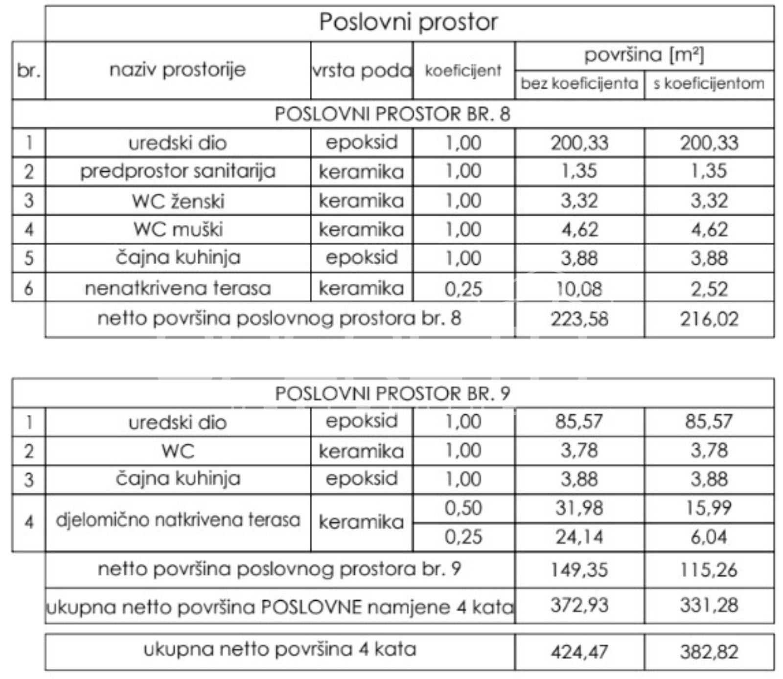 Luksuzni poslovni prostor od 115,26 m2 na četvrtom katu. Označen je kao poslovni prostor broj 9. Moderna zgrada bit će na samom ulazu u Varaždin iz pravca autoceste Goričan-Zagreb. Radi se vrlo luksuznoj novogradnji bruto površine zgrade od 2.800 m2, a neto 2.290 m2. Kompletni prostor zgrade bit će funkcionalan i autonoman 24 sata. S obzirom na vrstu djelatnosti postoji mogućnost pregovora i odabira površina ovisno o potrebama kao i prilagodba u izgradnji potencijalnoj djelatnosti. U zgradi će biti 2 posebna ulaza/izlaza, neovisna komunikacija, a bit će ugrađen kompletni sustav optičke infrastrukture. Cijela zgrada bit će niskog energetskoga potencijala s ugrađenim toplinskim pumpama s najnovijim sustavima grijanja i hlađenja. Završetak 6.mj. 2026.