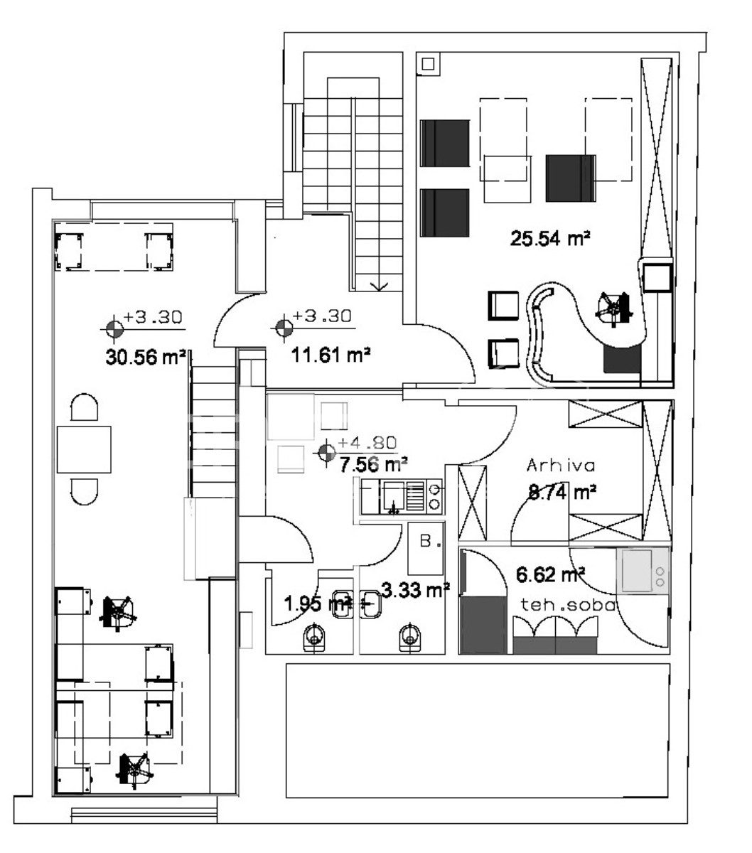 U centru grada Varaždina prodaje se poslovni prostor neto površine 190m2, a sastoji se od nekoliko ureda, kuhinje, sanitarnih čvorova, arhive i tehničke sobe. Prostor se proteže kroz prizemlje i kat. Trenutno je uređen i spreman za rad kao poslovnica banke, a postoji i mogućnost obavljanja i drugi djelatnosti kao što su knjigovodstveni servisi, manje tvrtke te ostale uredske djelatnosti.