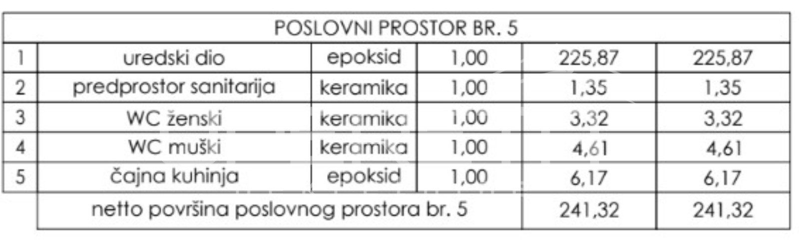 Luksuzni poslovni prostor od 241,32 m2 na drugom katu. Označen je kao poslovni prostor broj 5. Moderna zgrada biti će na na samom ulazu u Varaždin iz pravca autoceste Goričan-Zagreb. Radi se vrlo luksuznoj novogradnji bruto površine zgrade od 2.800 m2, a neto 2.290 m2. Kompletni prostor zgrade biti će funkcionalan i autonoman 24 sata. S obzirom na vrstu djelatnosti postoji mogućnost pregovora i odabira površina ovisno o potrebama kao i prilagodba u izgradnji potencijalnoj djelatnosti. U zgradi će biti 2 posebna ulaza/izlaza, neovisna komunikacija, a bit će ugrađen kompletni sustav optičke infrastrukture. Cijela zgrada bit će niskog energetskoga potencijala s ugrađenim toplinskim pumpama s najnovijim sustavima grijanja i hlađenja. Završetak 6.mj. 2026.