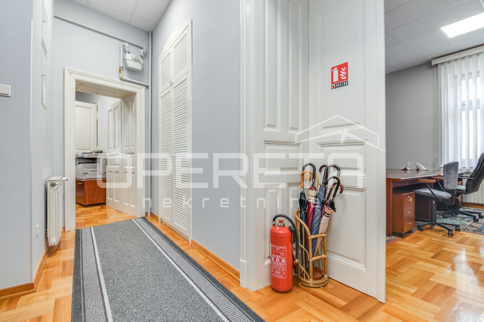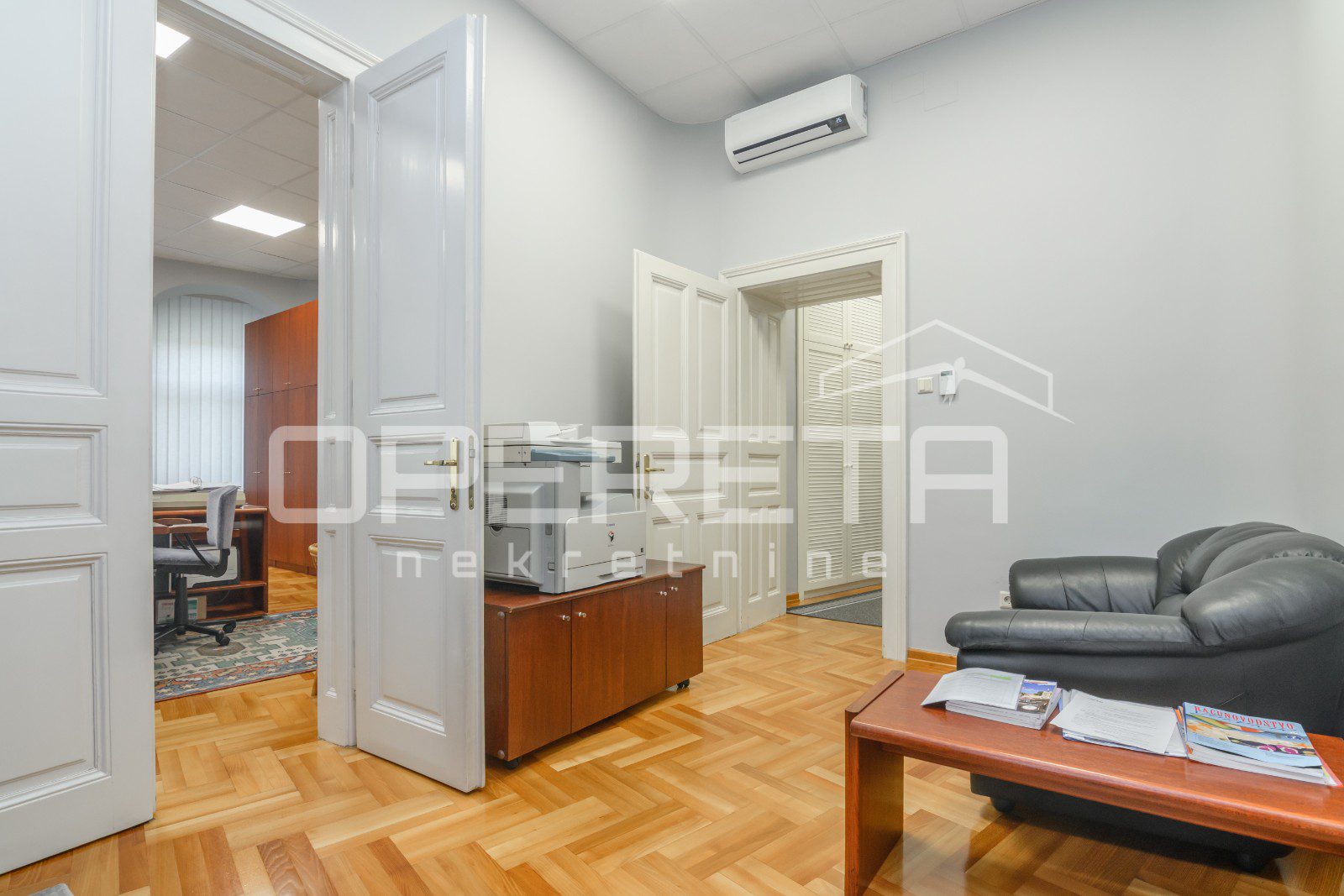 Daju se u zakup uredski poslovni prostori na top lokaciji u samom centru Zagreba na prvome katu zgrade ukupne površine 145,79 m2. Poslovni prostor sastoji se od 5 soba (ureda), garderobe sanitarnih čvorova te balkona. Prostor je namješten.