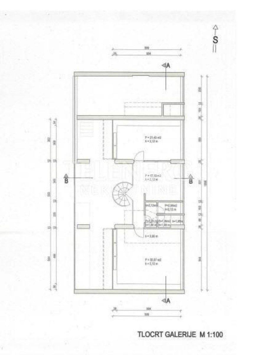 Galerija (58,07 m2): dvije zasebne uredske prostorije, kuhinja s blagovaonicom i dodatni sanitarni čvor.