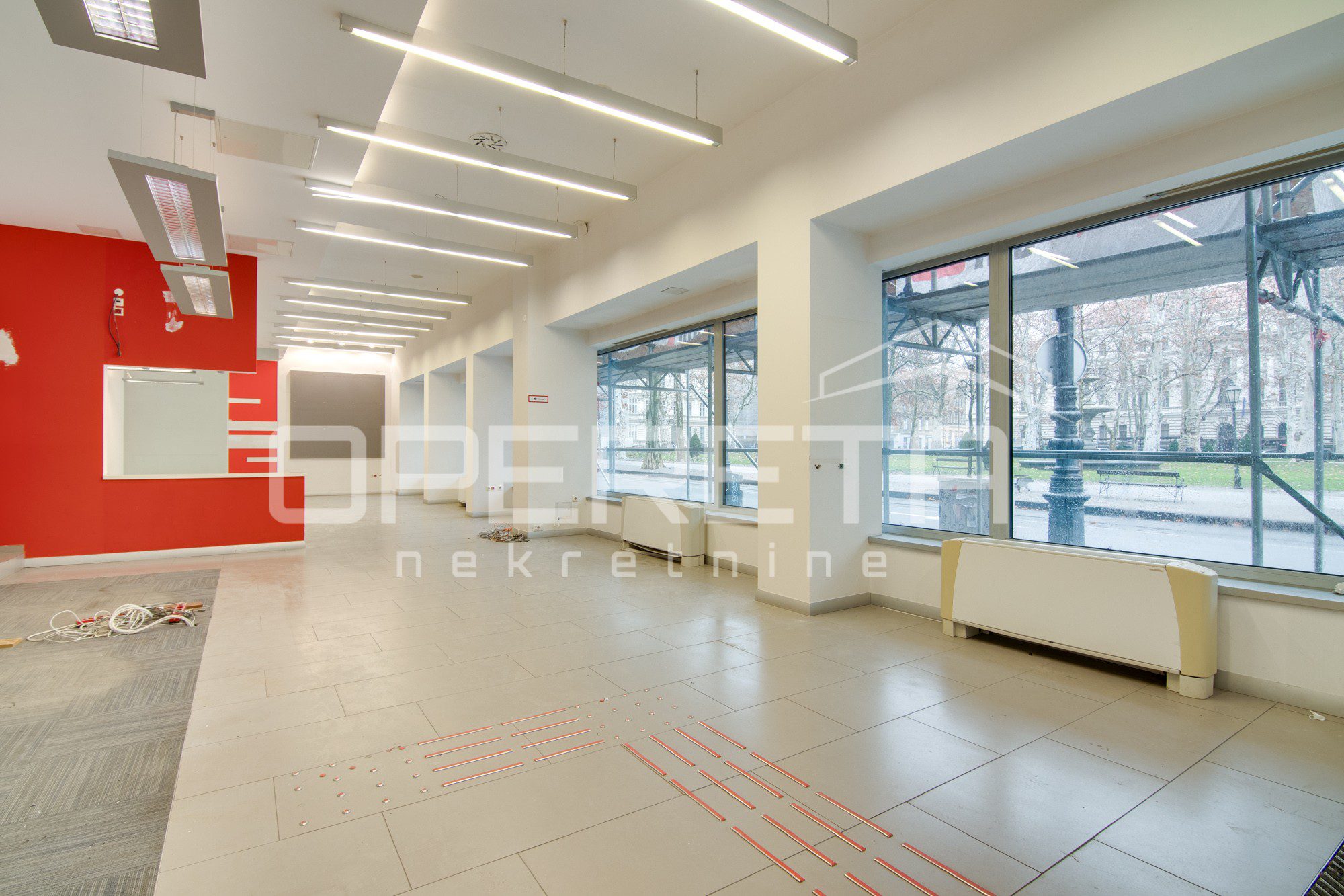 Na top lokaciji u strogom centru Zagreba i na izuzetno frekventnoj lokaciji daje se u zakup ulični lokal s velikim staklenim frontama. Lokal se proteže na dvije strane i dimenzije izloga su 22 m i 16 m.