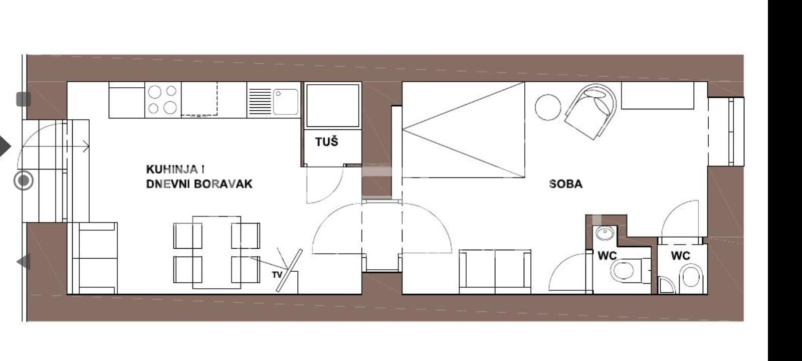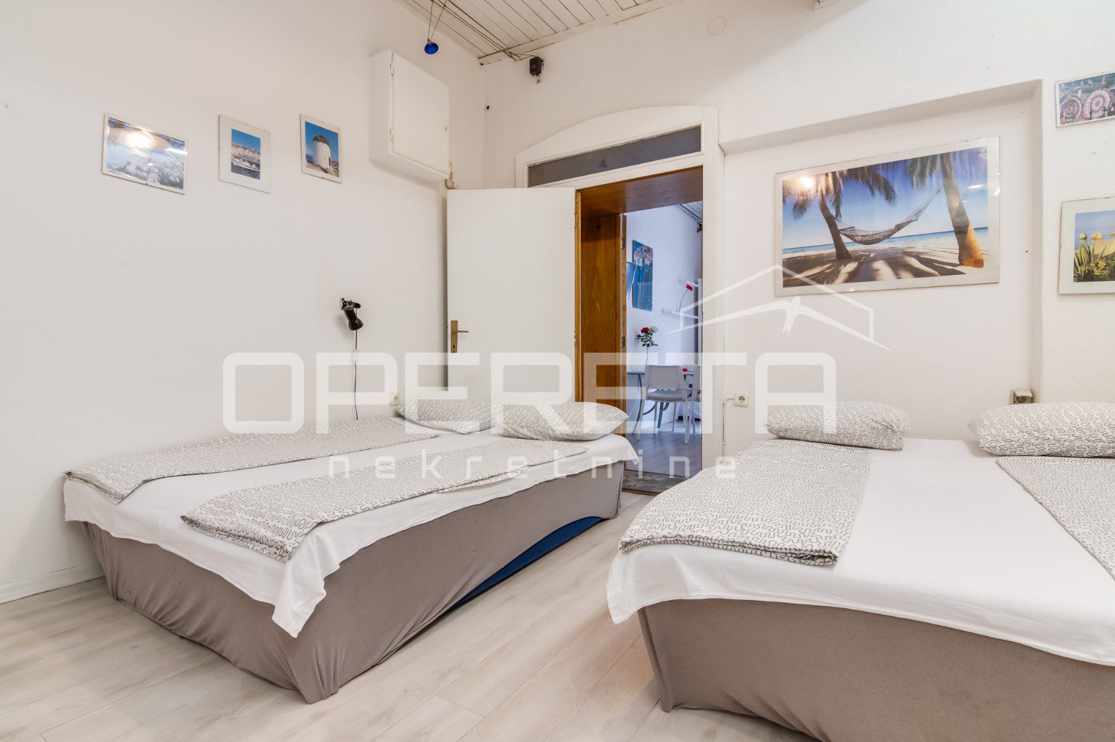 Prodaje se poslovni prostor/ulični lokal dvostrane orijentacije S-J, u prizemlju ( od ukupno 4 kata) dvorišne zgrade na vrlo atraktivnoj lokaciji užeg centra grada. Sastoji se od “open space” kuhinje s blagovaonicom i prostorom za boravak, spavaće sobe, wc-a s umivaonikom i zasebnog wc-a, a pripada mu i spremište od 11 m2 BRP na etaži -1. Električno grijanje ( na klimu), a u zgradi i alternativno grijanje na plin.