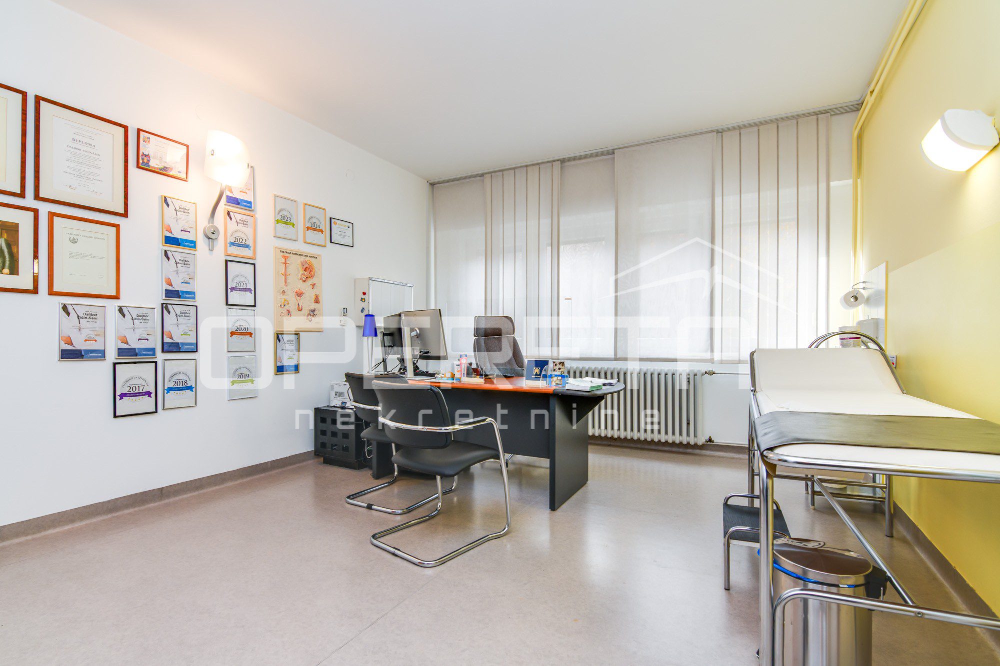 Iznajmljuje se poslovni prostor, trenutno u funkciji ordinacije na idealnoj lokaciji u samome centru grada, svega nekoliko minuta hoda od Kvaternikovog trga, nadomak javnog prijevoza, u blizini nekoliko javnih garaža.