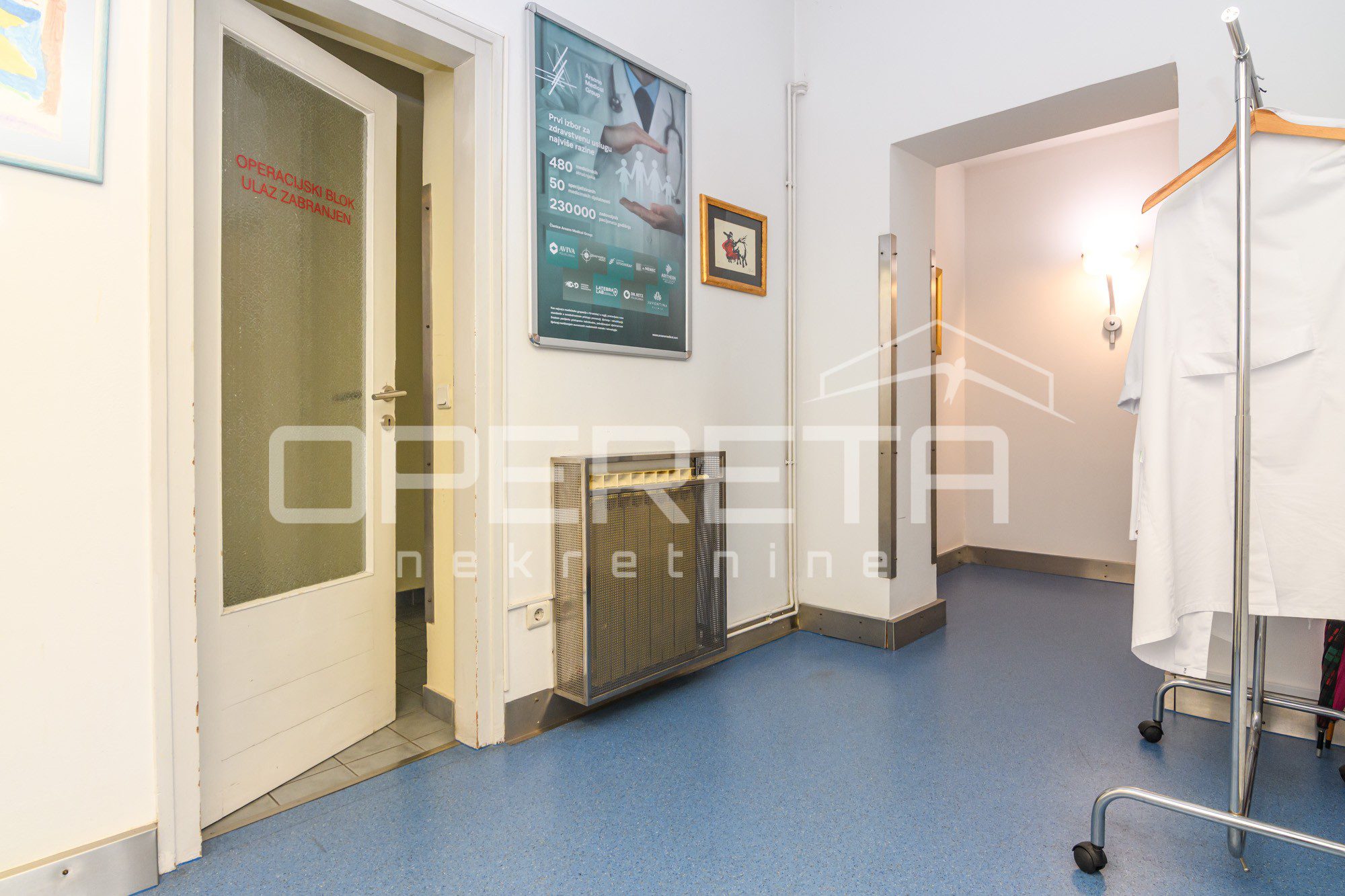 Prostor se rasprostire na 224 m2, a sastoji se od operacijske sale, predprostora, sobe za oporavak s kupaonicom i toaletom, dvije prostorije za ultrazvuk, tri uredske prostorije, dva sanitarna čvora, kupaonice, recepcije, čekaonice i nusprostorija.