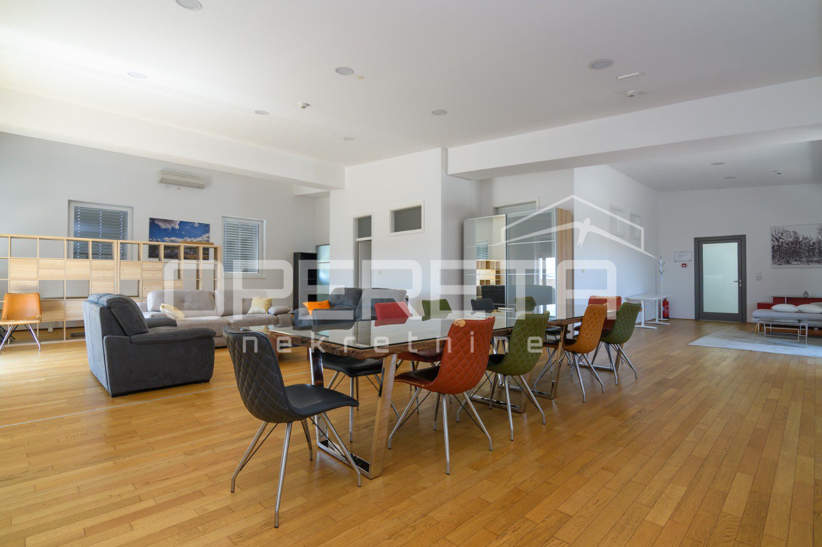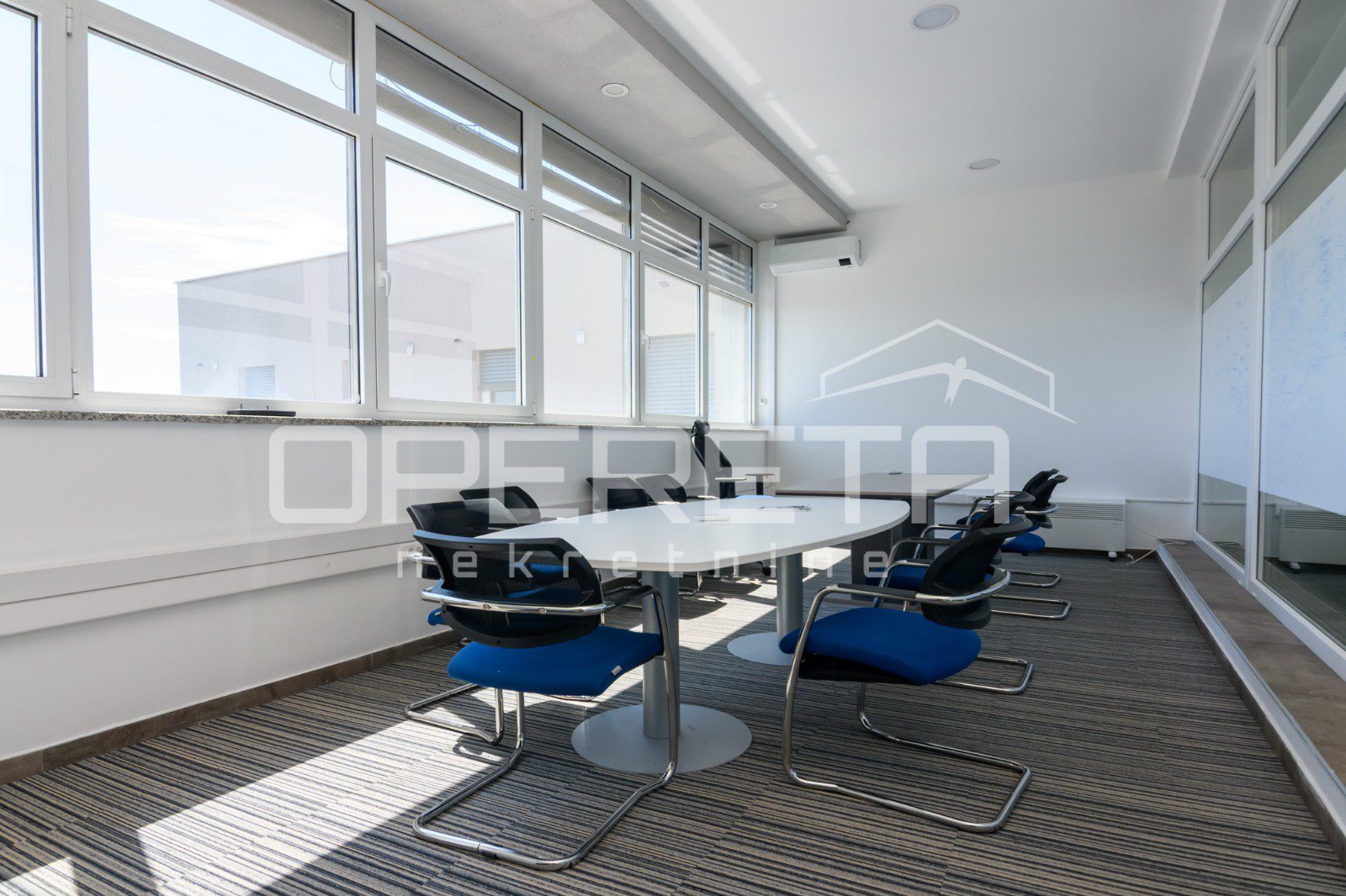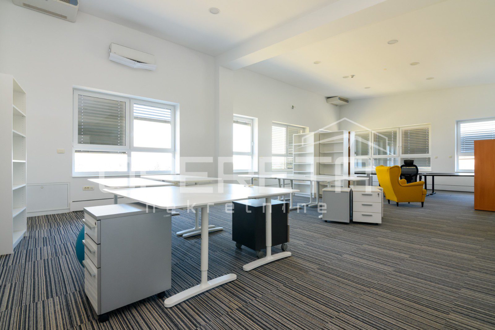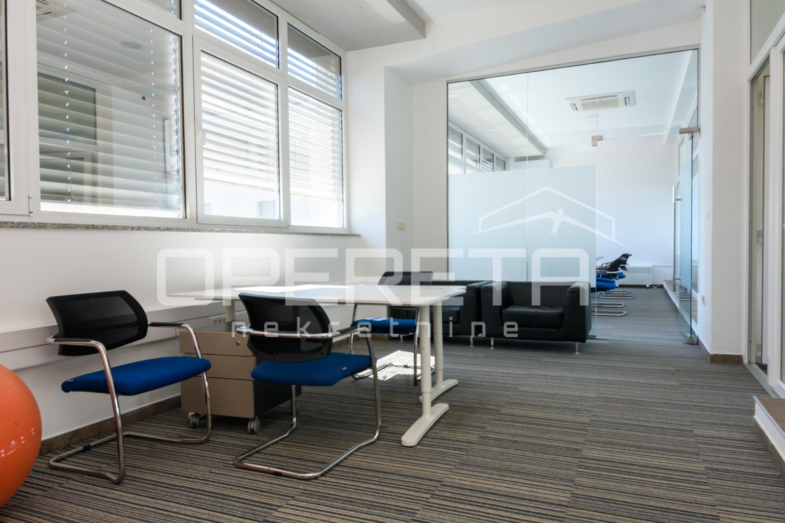 U ponudi za zakup nalazi se poslovni prostor smješten na trećem katu poslovne zgrade, funkcionalno organiziran i prilagodljiv različitim poslovnim potrebama. Prostor se sastoji od dva prostrana open space dijela, četiri zasebne uredske prostorije, dvije potpuno opremljene kuhinje s blagovaonicom, kupaonice s toaletom, sanitarnim čvorovima te nenatkrivene terase koja prostoru daje dodatnu vrijednost. Prostori su pregrađeni gips-kartonskim zidovima i staklenim stijenama, što omogućuje jednostavne prilagodbe i reorganizaciju rasporeda sukladno potrebama zakupnika. Razvedena IT mreža i klimatizacija osiguravaju ugodno i funkcionalno radno okruženje, dok je zgrada opremljena alarmnim sustavom, kontrolom pristupa i video nadzorom. Zakupnicima su po potrebi na raspolaganju garažna i vanjska parkirna mjesta. Prostor je pogodan za uredske, IT, konzultantske, projektne ili administrativne djelatnosti. Više informacija dostupno je na upit.