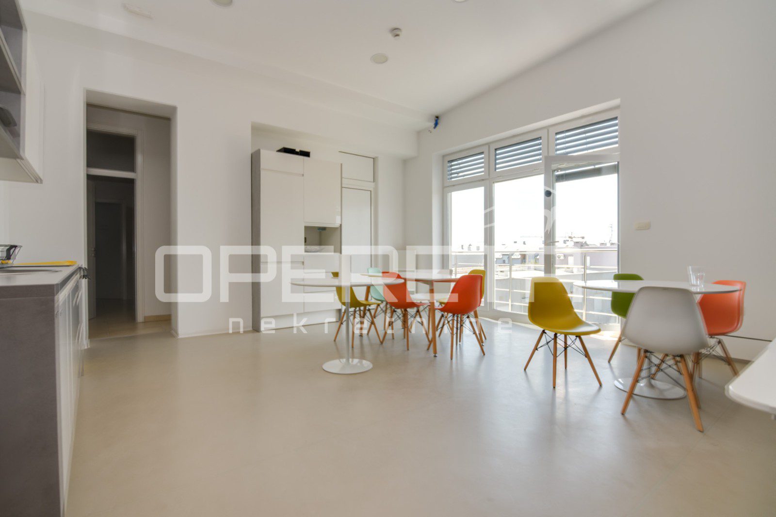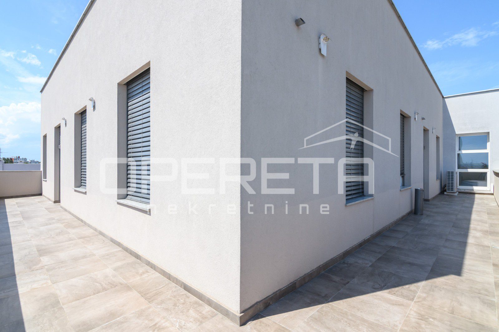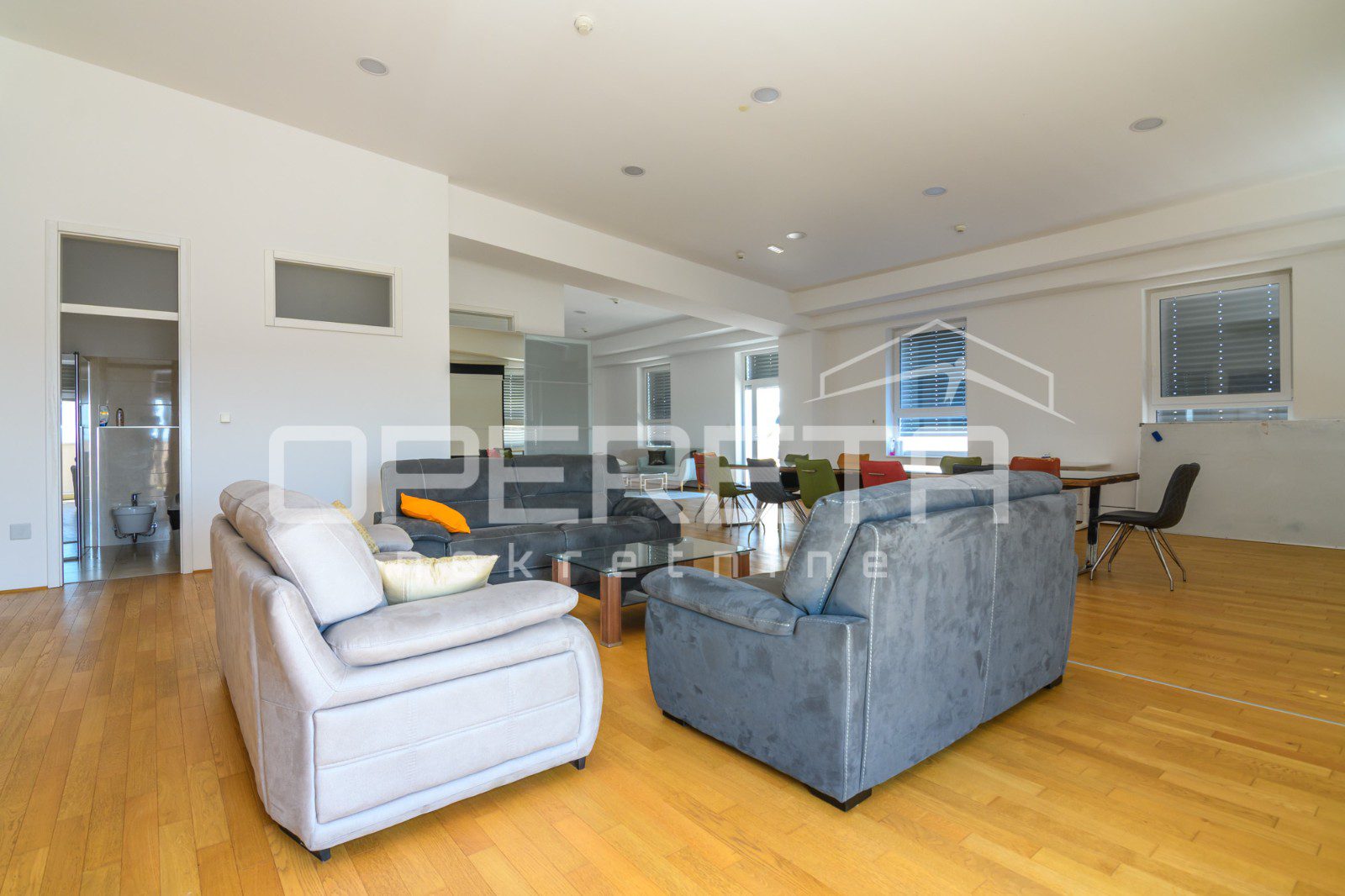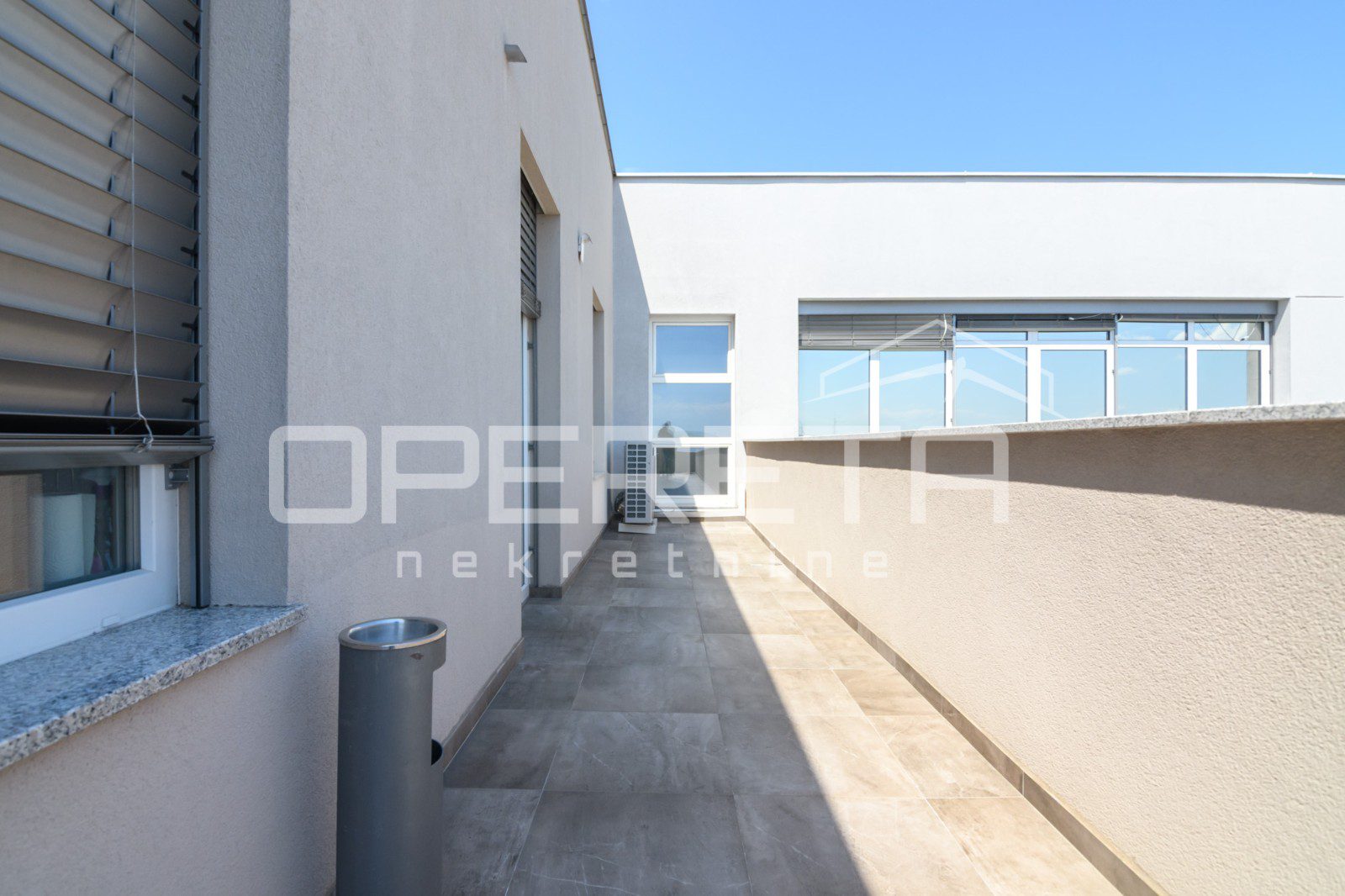 U ponudi za zakup nalazi se poslovni prostor smješten na trećem katu poslovne zgrade, funkcionalno organiziran i prilagodljiv različitim poslovnim potrebama. Prostor se sastoji od dva prostrana open space dijela, četiri zasebne uredske prostorije, dvije potpuno opremljene kuhinje s blagovaonicom, kupaonice s toaletom, sanitarnim čvorovima te nenatkrivene terase koja prostoru daje dodatnu vrijednost. Prostori su pregrađeni gips-kartonskim zidovima i staklenim stijenama, što omogućuje jednostavne prilagodbe i reorganizaciju rasporeda sukladno potrebama zakupnika. Razvedena IT mreža i klimatizacija osiguravaju ugodno i funkcionalno radno okruženje, dok je zgrada opremljena alarmnim sustavom, kontrolom pristupa i video nadzorom. Zakupnicima su po potrebi na raspolaganju garažna i vanjska parkirna mjesta. Prostor je pogodan za uredske, IT, konzultantske, projektne ili administrativne djelatnosti. Više informacija dostupno je na upit.