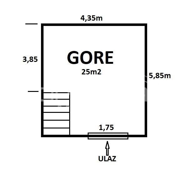 Gornja etaža: 25 m², visine 3,75m (omogućava izvedbu galerije)