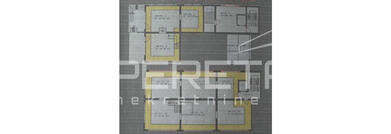 Dvoetažni uredski prostor koji se prostire na prizemlje i mezanine . Sastoji se od: sobe 1, sobe 2 i sobe 3 u prizemlju, te sobe 4, sobe 5, sobe 6, sobe 7, sobe 8, sobe 9, WC-a 1 s predprostorom, WC-a 2 s predprostorom i stubišta u mezzaninu, ukupne površine 340,59 m2.