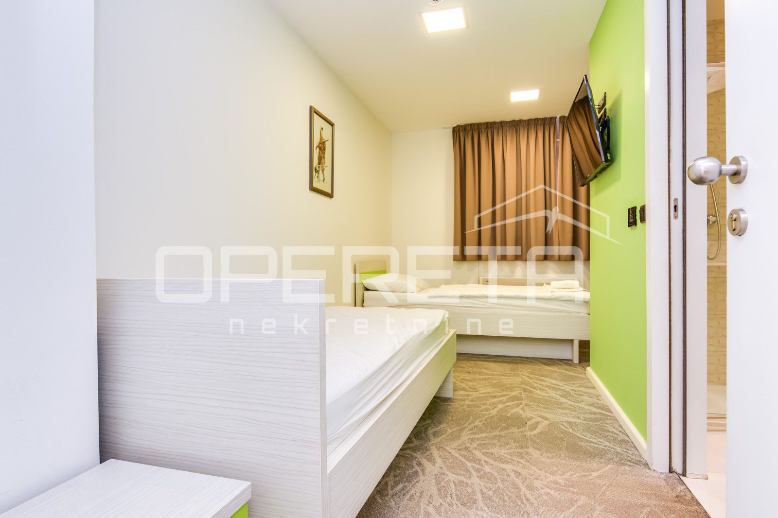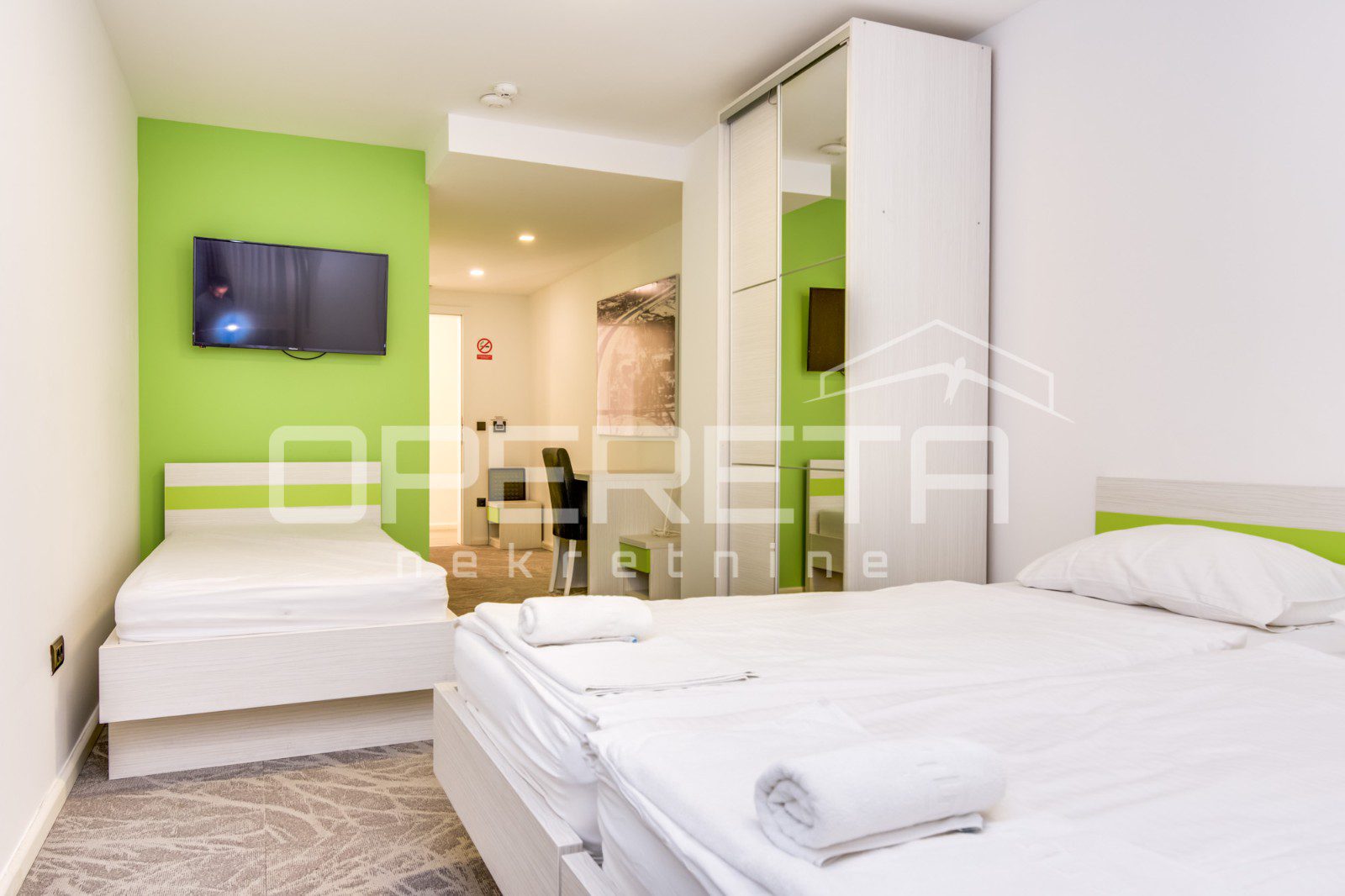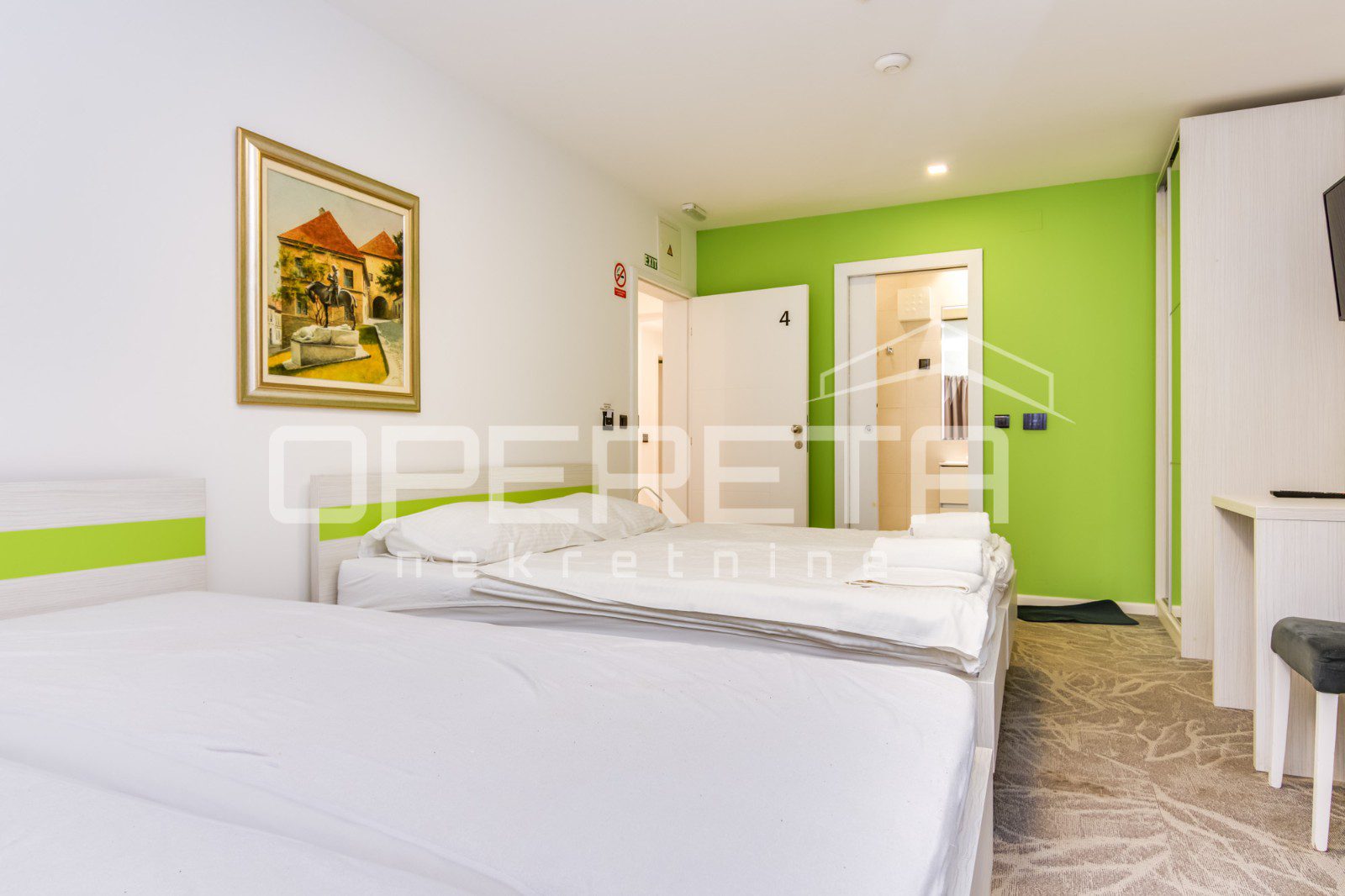 Prodaje se u cijelosti, zajedno s registriranom tvrtkom i svim potrebnim dozvolama MTU-a, uključujući važeće odobrenje za ukupno 28 kreveta. Uz objekt dolaze i dva parkirna mjesta u otvorenoj garaži i jedno vanjsko parkirno mjesto.