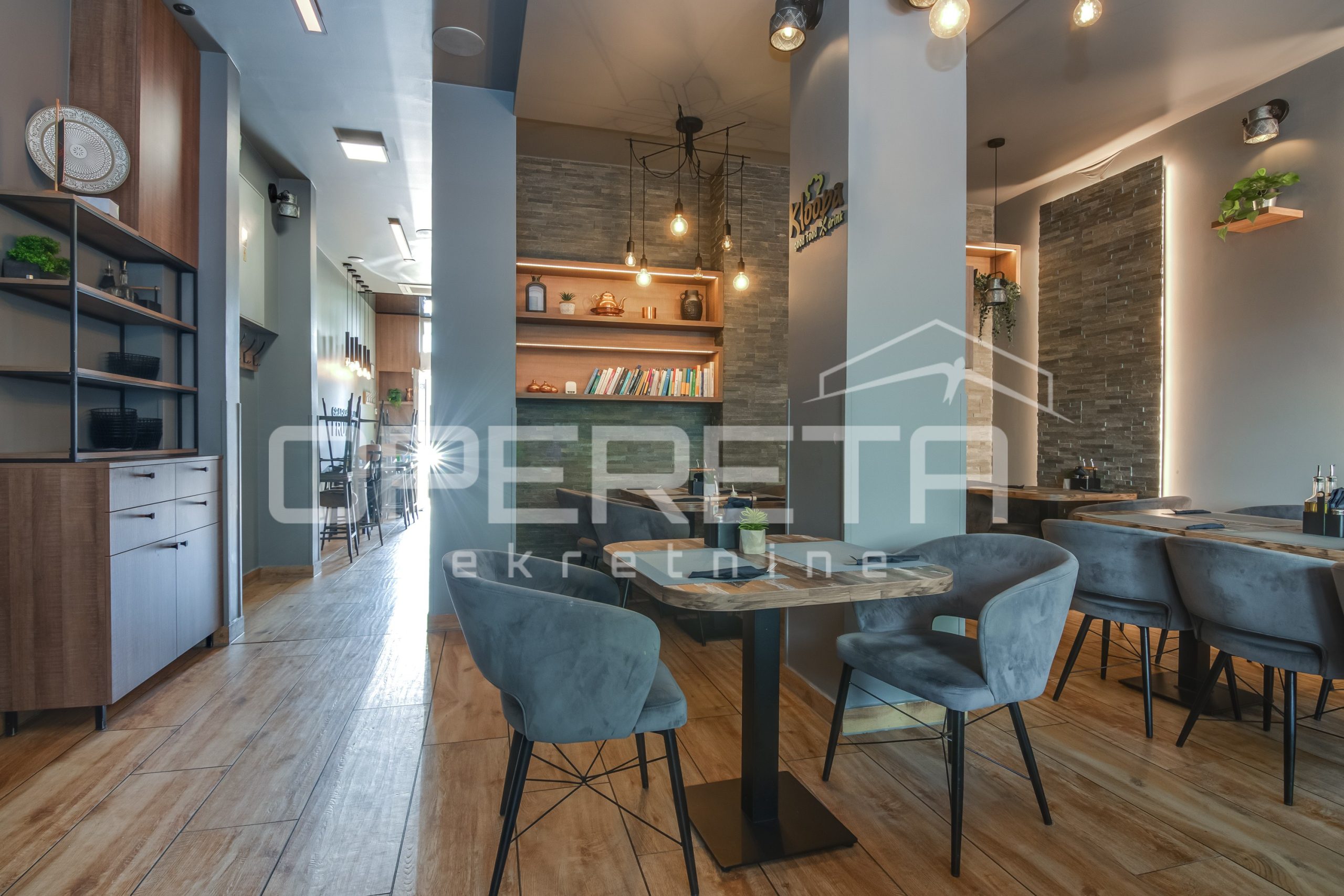 Prostor se sastoji od ukupne kvadrature 132 m2. Prizemni dio gdje se nalazi šank, sjedeći dio i kuhinja ima 100 m2, dok se na -1 etaži nalaze sanitarni čvorovi i skladište. Prostor je kompletno opremljen i kao takav se i iznajmljuje.