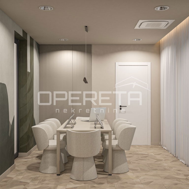 Najam, Trnje, Radnička. Iznajmljuje se kompletno novouređeni luksuzni poslovni prostor koji se sastoji od ulaznog prostora, prijema, hodnika, kuhinje, 2 sanitarna čvora, 3 uredske prostorije, sobe za sastanke, vanjskog otvorenog prostora (20m²), Moguće je zakupiti i više parkirnih mjesta u garaži po cijeni od 100 eura plus PDV. Direktan pristup u ured dizalom iz garaže. Prostor se iznajmljuje namješten i opremljen kako je vidljivo na slikama. Odlična lokacija u poslovnoj zoni i blizini javnog prijevoza. Optički internet! Traže se najmoprimci za dugoročan najam!