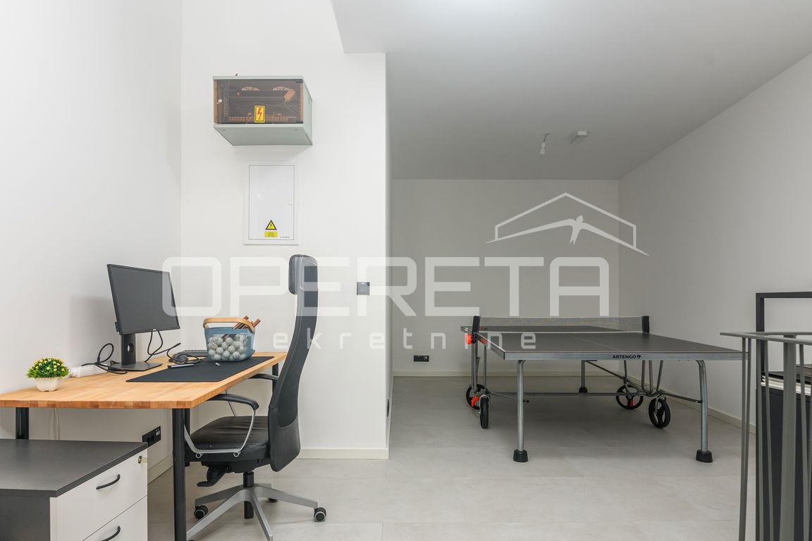 Prostor je u odličnom stanju, klimatiziran, dizalice topline, djelomično podno grijanje, alarm te parking od 30,95 m² ispred samog prostora.