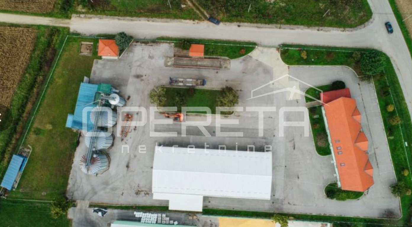 Prodaje se poslovni kompleks višestruke namjene na zemljištu od 10 tisuća m². Sastoji se od hale-podnog skladišta veličine 600 m², silosa prihvatne snage od 750 tona, Eliwell sušare 7 tona/sat. Veliki prostor za manipulaciju kamionima i vilčarima. Poslovna zgrada je veličine 600 m² i ima kompletno novo uređene urede s novim kuhinjama i sanitarnim čvorovima , opremljen caffe bar, te u prizemlju veliki prostor za poljoprivrenu ljekarnu sa skladištima i garderobama. Uz poslovnu zgradu i caffe bar ima preko 30 parkirnih mjesta.