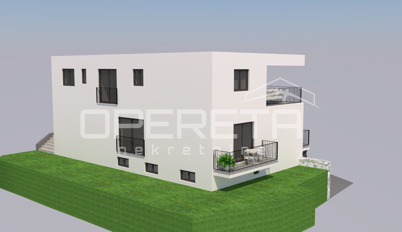 Na mirnoj, povišenoj lokaciji u Banjolu, s koje se pruža otvoren pogled na more i staru jezgru Raba, u izgradnji je kuća s tri stambene jedinice. Područje je tiho, bez turističke vreve i prometa.