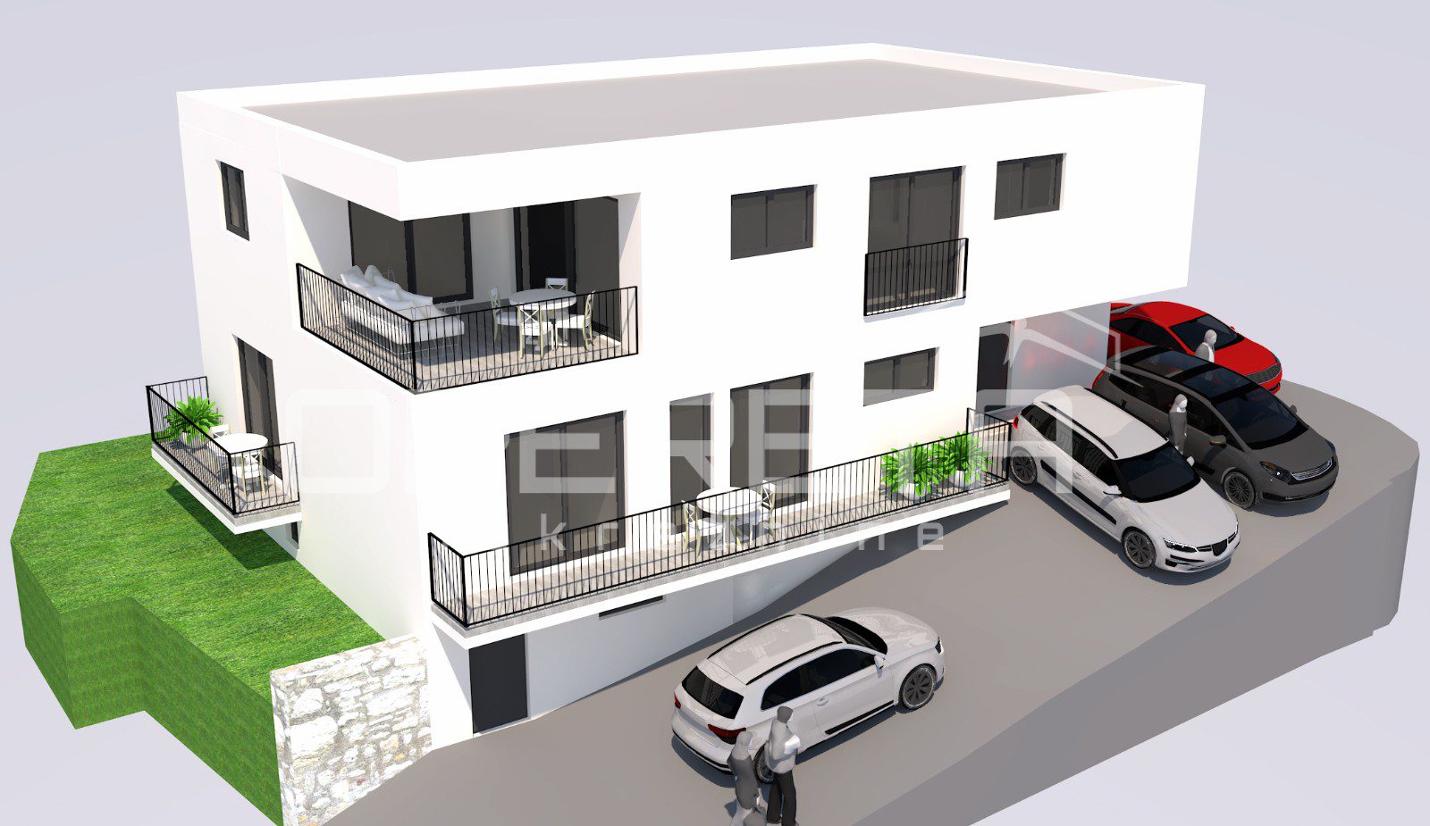 Stan se sastoji od tri spavaće sobe, dvije kupaonice, dnevnog boravka s kuhinjom i blagovaonicom, ostave, terase od 15 m² te dodatnih prostora koji povezuju stan – stubišta, hodnika i predprostora. U cijenu su uključena i dva vanjska parkirna mjesta.