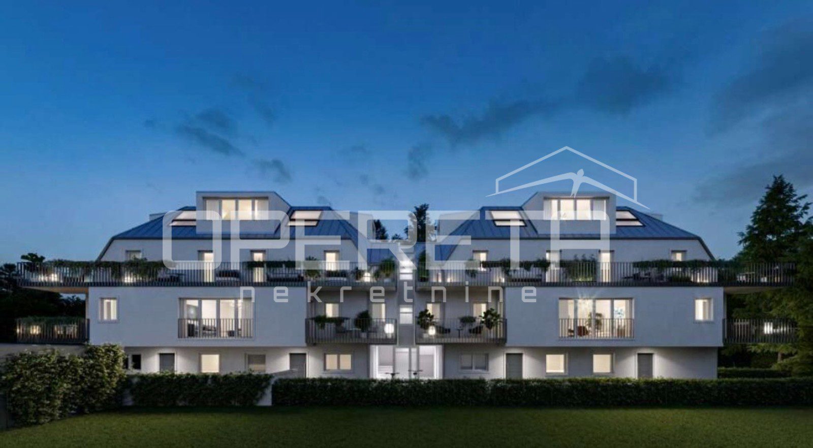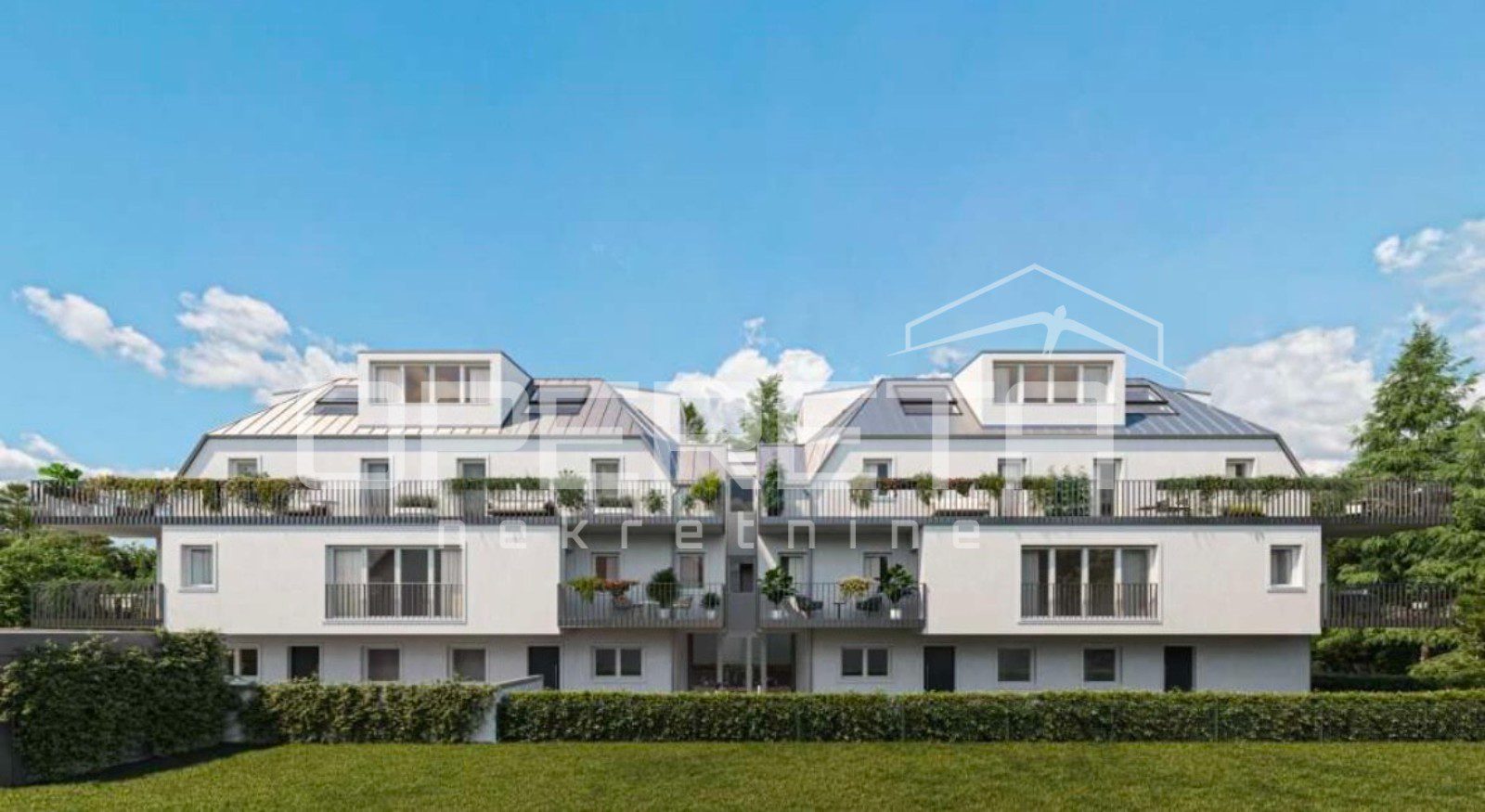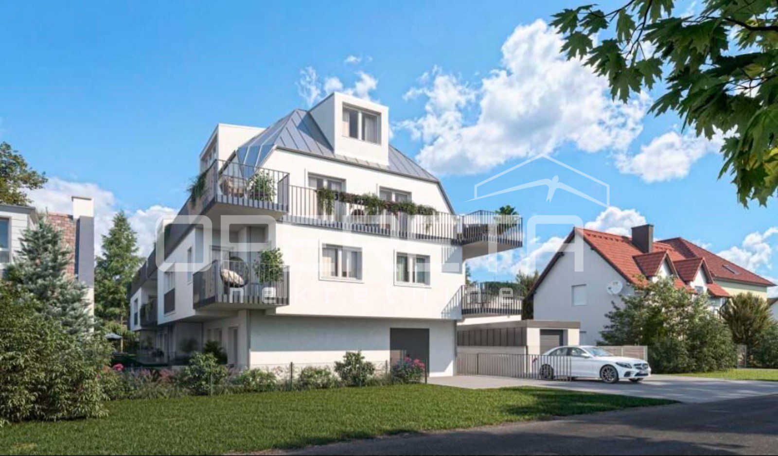 Na prekrasnoj, mirnoj i zelenoj lokaciji, u 22. bezirku, izgrađen je moderan obiteljski projekt novogradnje sa 12 stambenih jedinica, 9 garažnih parkirnih mjesta te vanjsko parkiralište. Stan se sastoji od dvije spavače sobe, dnevnog dijela sa kuhinjom i blagovaonom, te dva toaleta s kupaonom, dvjema terasama i dvaju balkona. Grijanje i hlađenje putem dizalice topline, te podno grijanje plinsko etažno.