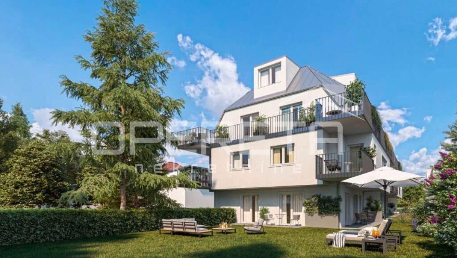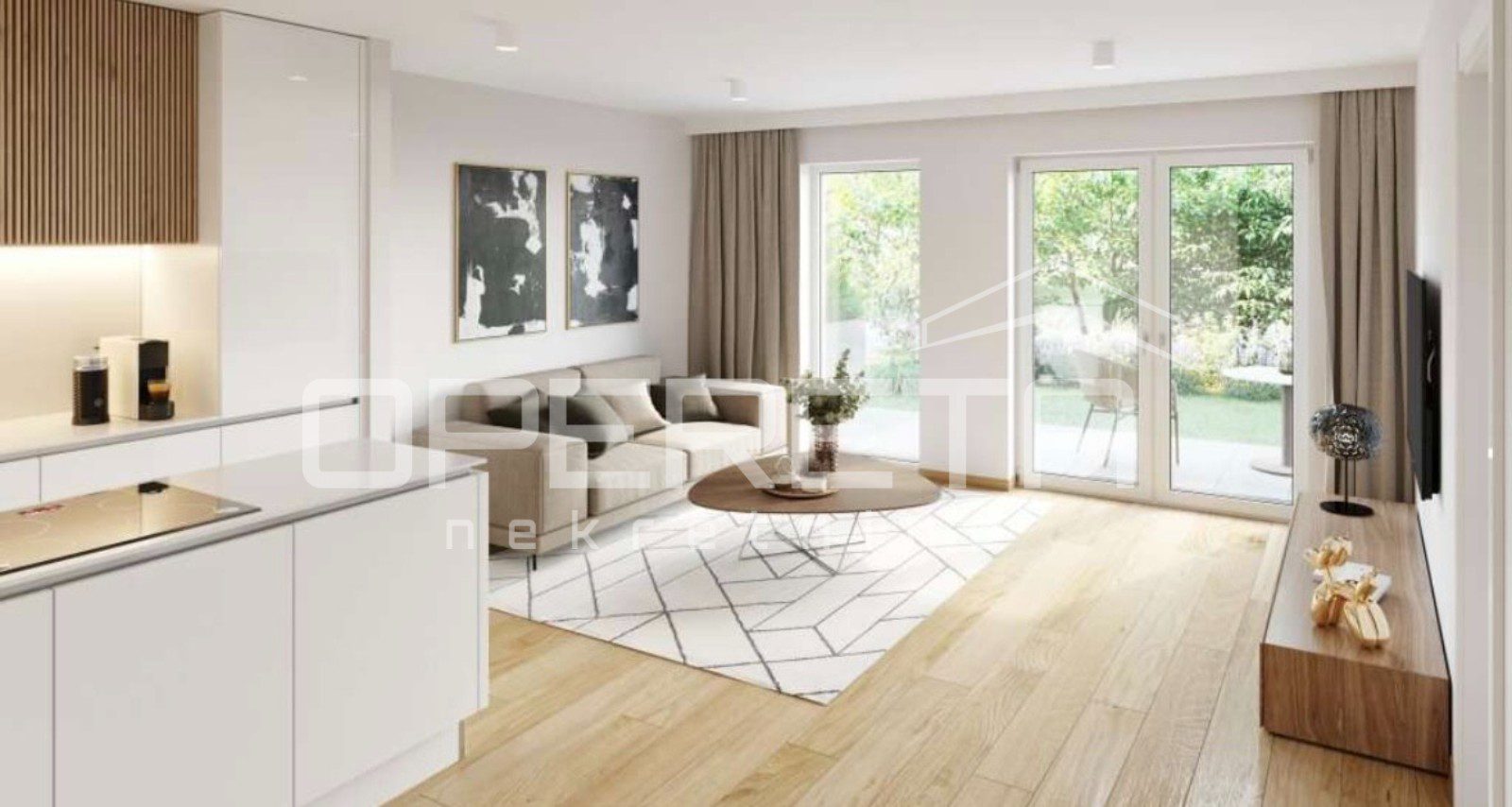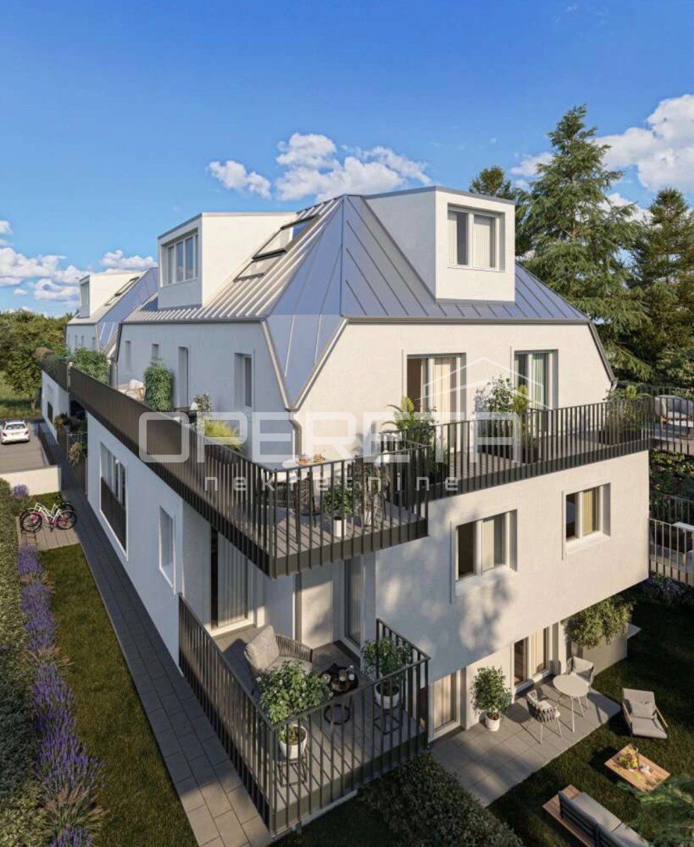 Na prekrasnoj, mirnoj i zelenoj lokaciji, u 22. bezirku, izgrađen je moderan obiteljski projekt novogradnje sa 12 stambenih jedinica, 9 garažnih parkirnih mjesta te vanjsko parkiralište. Stan se sastoji od dvije spavače sobe, dnevnog dijela sa kuhinjom i blagovaonom, te dva toaleta s kupaonom, dvjema terasama i dvaju balkona. Grijanje i hlađenje putem dizalice topline, te podno grijanje plinsko etažno.