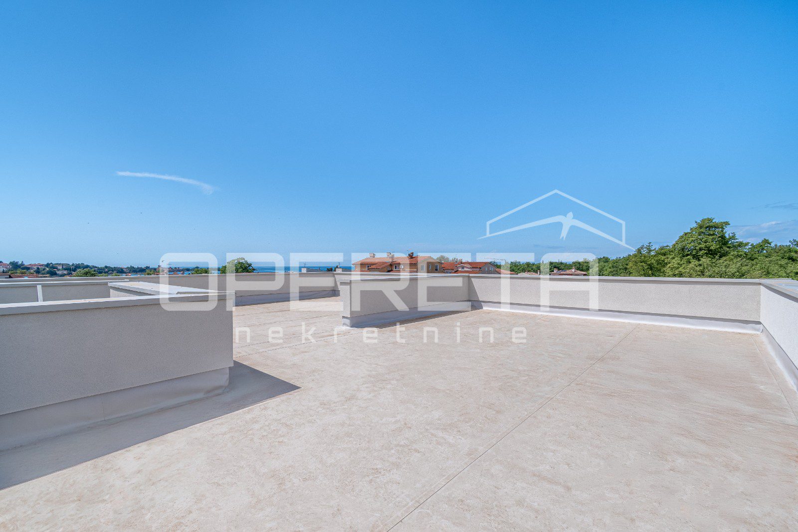 Iznaše ponude izdvajamo vrhunski stan na prvom katu od 108,20 m2 i krovnom terasom od 112,50 m2, 300 m od mora.