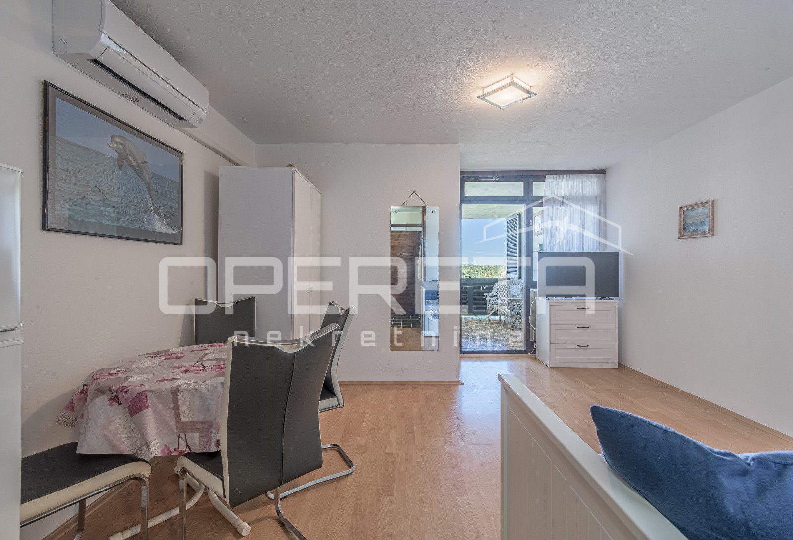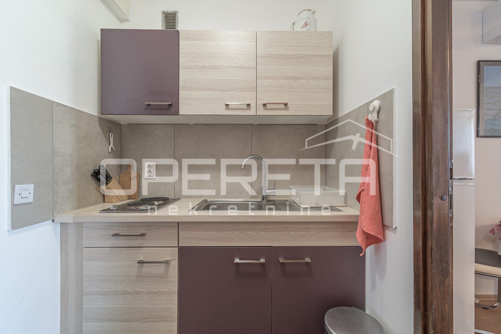 Smješten je na drugom katu stambene zgrade, a sastoji se od kuhinje, dnevnog boravka s blagovaonicom, jedne spavaće sobe te prostrane lođe s pogledom na more. Stan se nalazi na atraktivnoj lokaciji, svega 200 metara udaljen od mora.
