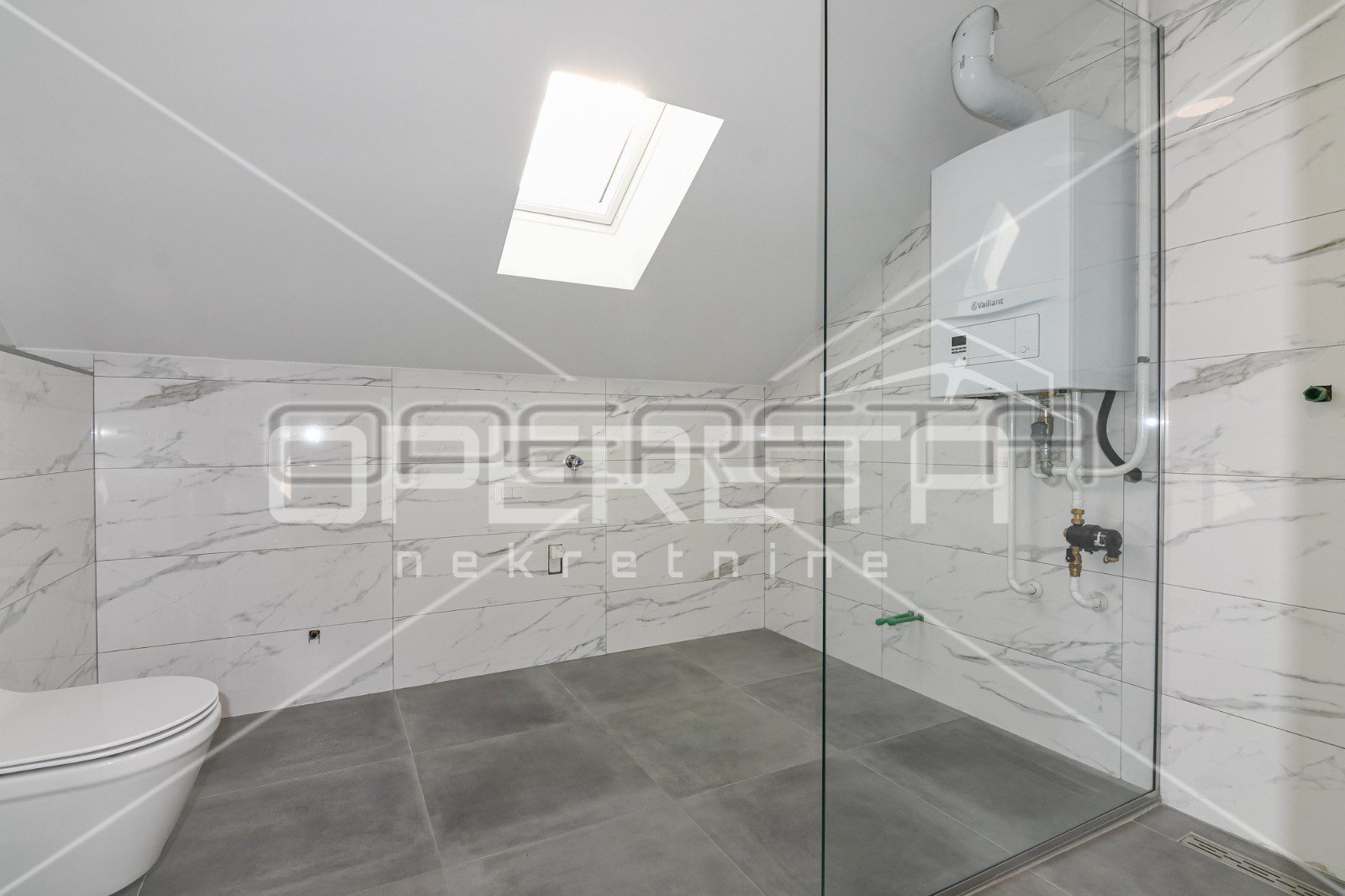 Kvalitetno građen i moderan stan u novogradnji, funkcionalnog tlocrta, u potkrovlju zgrade koja se sastoji od 3 stana. Jedinstvena lokacija u blizini i jednakoj udaljenosti od centra Stubičkih Toplica, lječilišta i bazena te Donje Stubice i Termi Jezerčica.