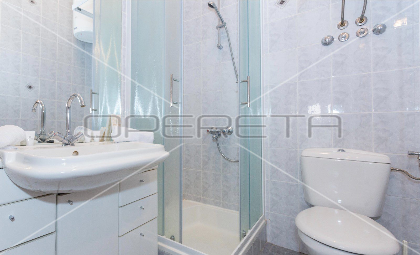 Kupaonica se nalazi odmah na kraju hodnika, kompaktna i funkcionalna, opremljena svim potrebnim sanitarijama. S jedne strane hodnika nalazi se ulaz u prostrani dnevni boravak, koji je povezan s blagovaonicom i kuhinjom u jedan otvoreni, svijetli prostor. Ovaj dio stana idealan je za obiteljska