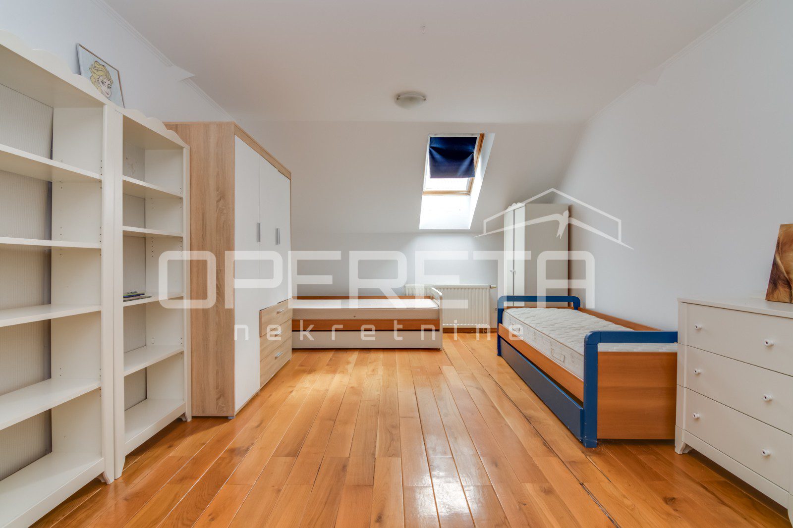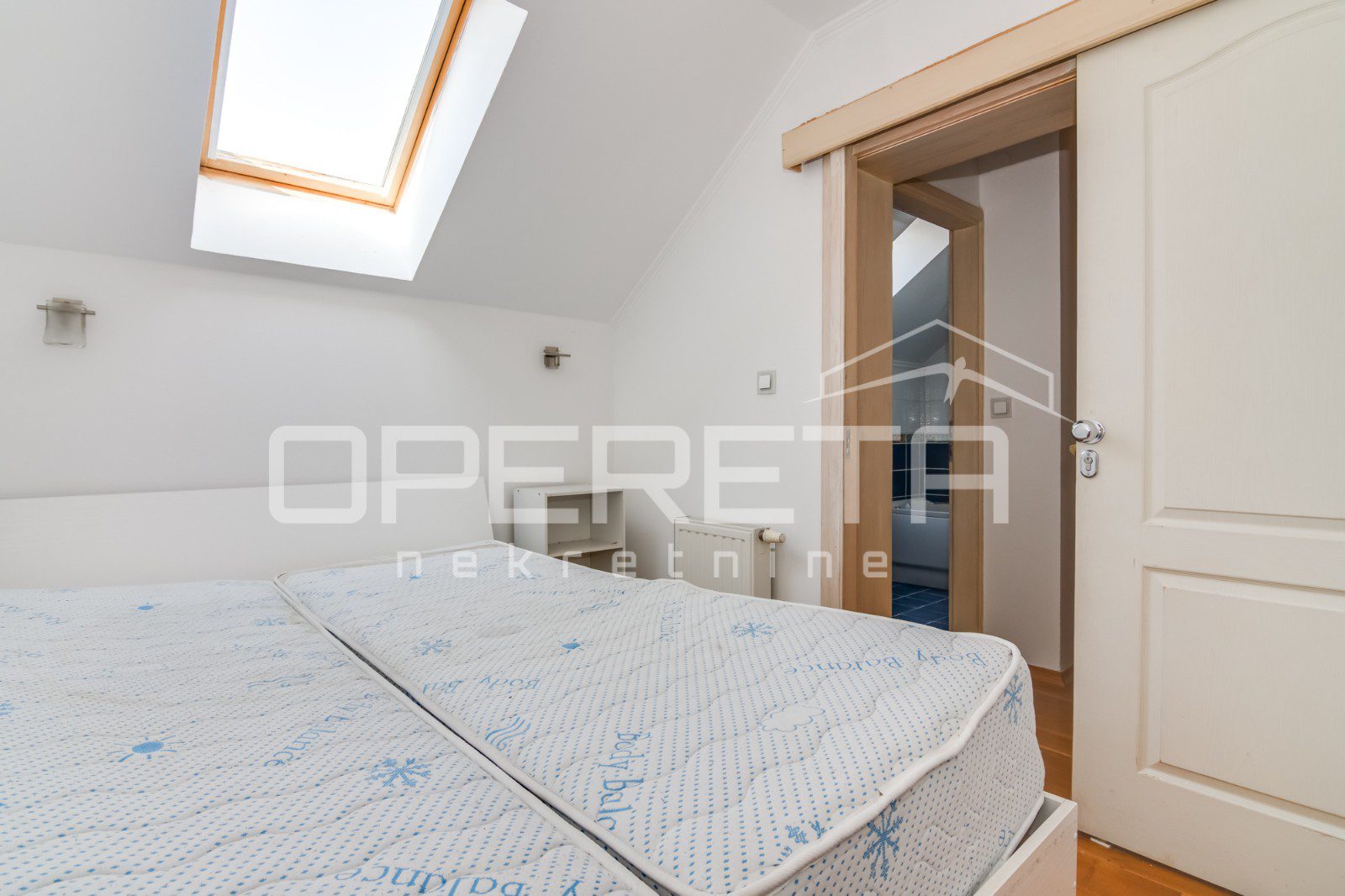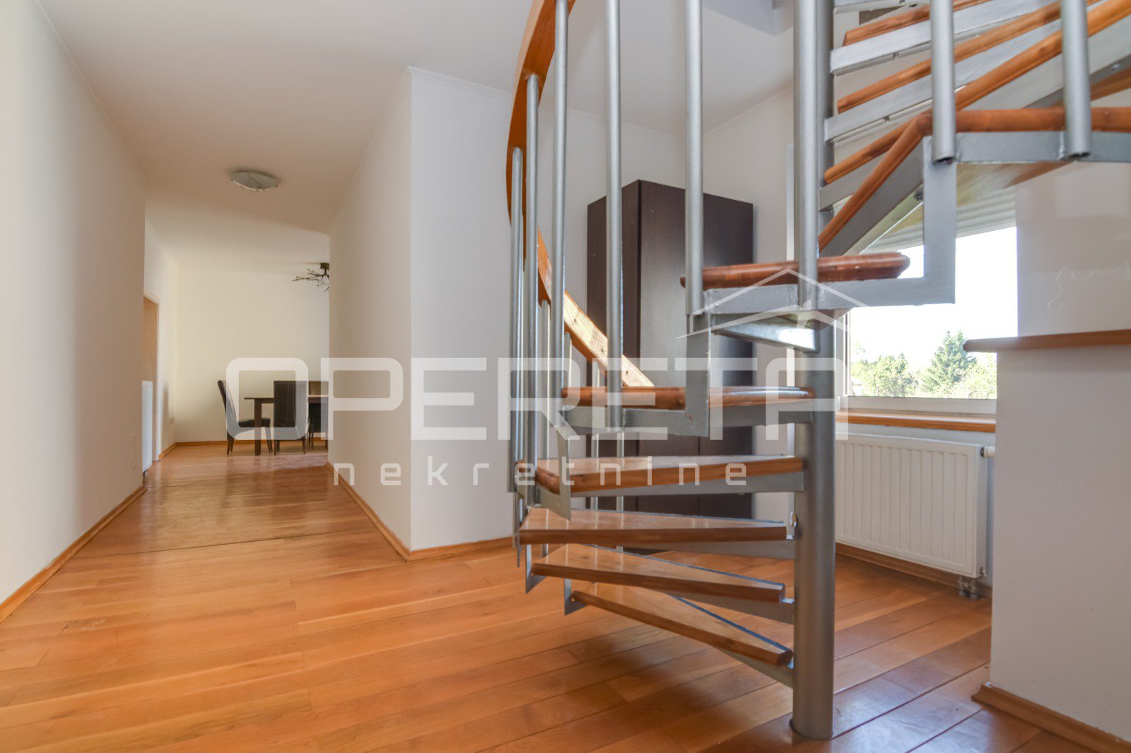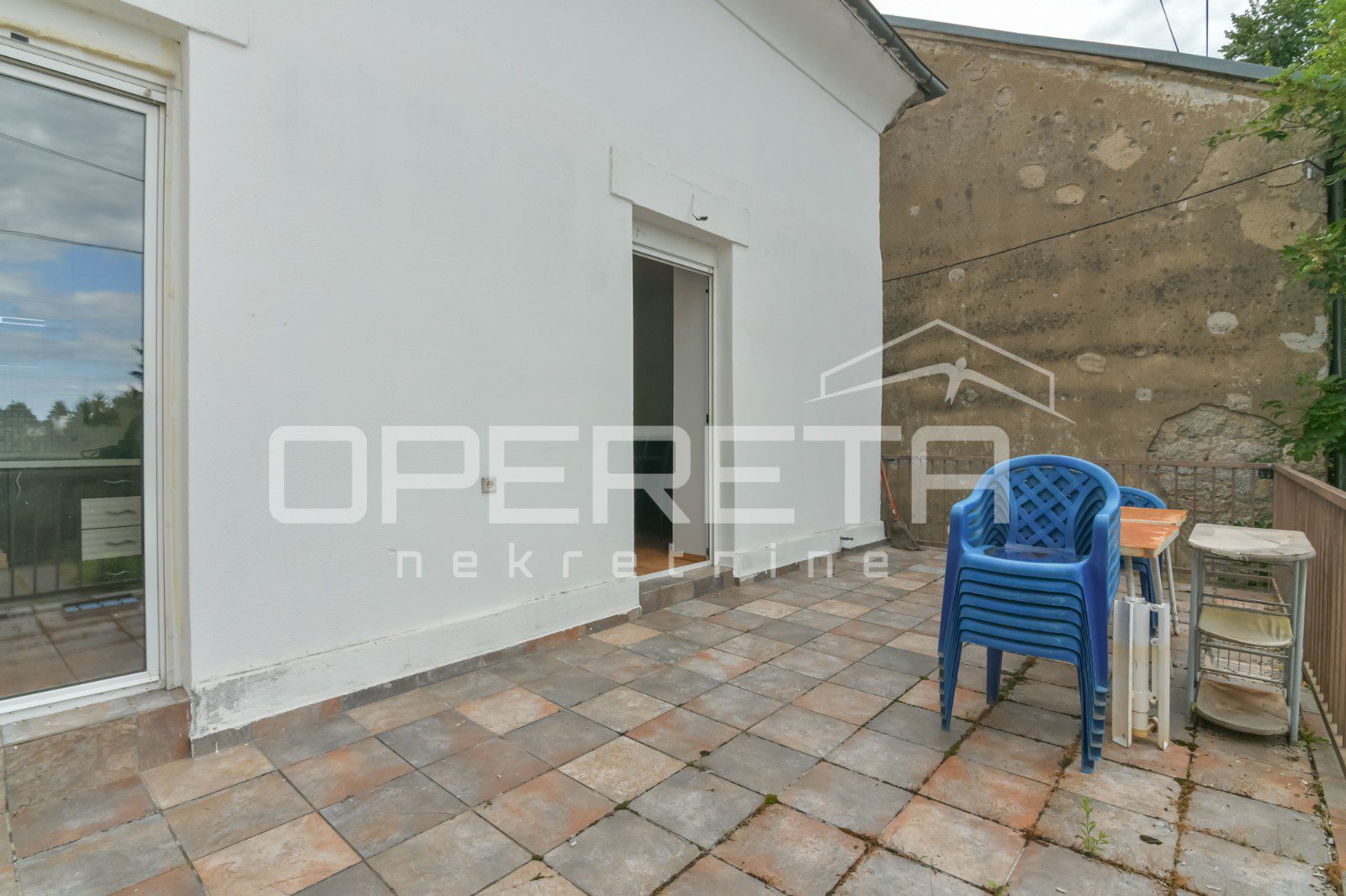 Prostran i komforan stan na 1. katu i potkrovlju zgrade u najužem centru grada. NKP prema zk 73,43 m2, SZ-JI orijentacije, prozračan i pun svjetla, razveden je na dvije etaže: na donjoj etaži nalazi se “open space” kuhinja s blagovaonicom te izlazom na prostranu terasu, dnevni boravak, hodnik i kupaonica s wc-om. Nutarnje stubište povezuje ju s potkrovljem gdje se nalaze dvije spavaće/radne sobe s velikim “walk-in” ormarom, kupaonica s wc-om i hodnik.