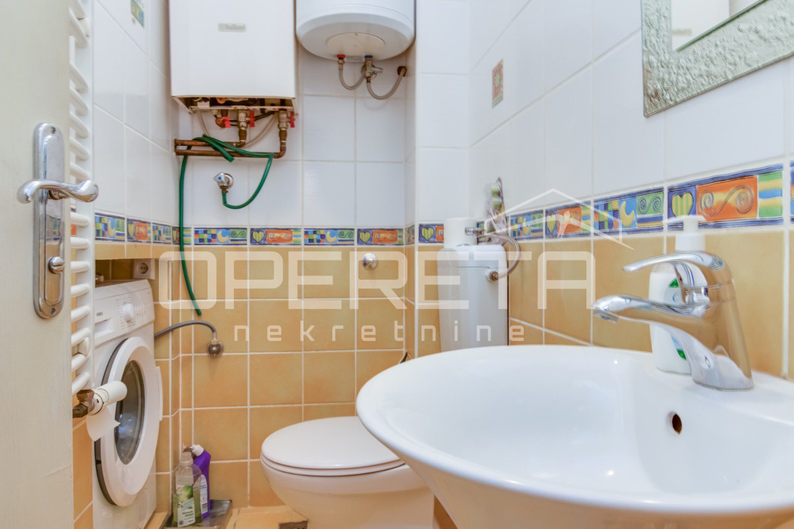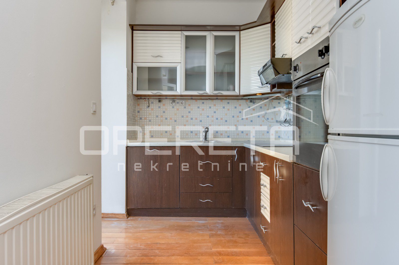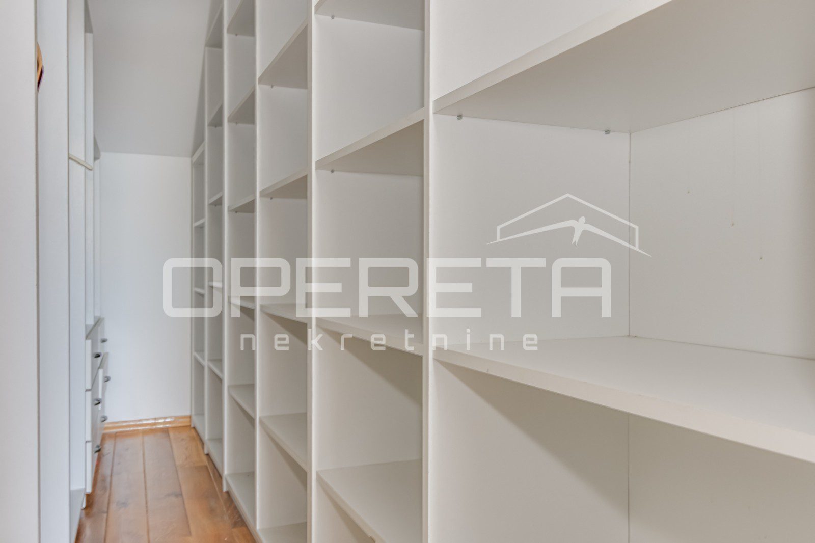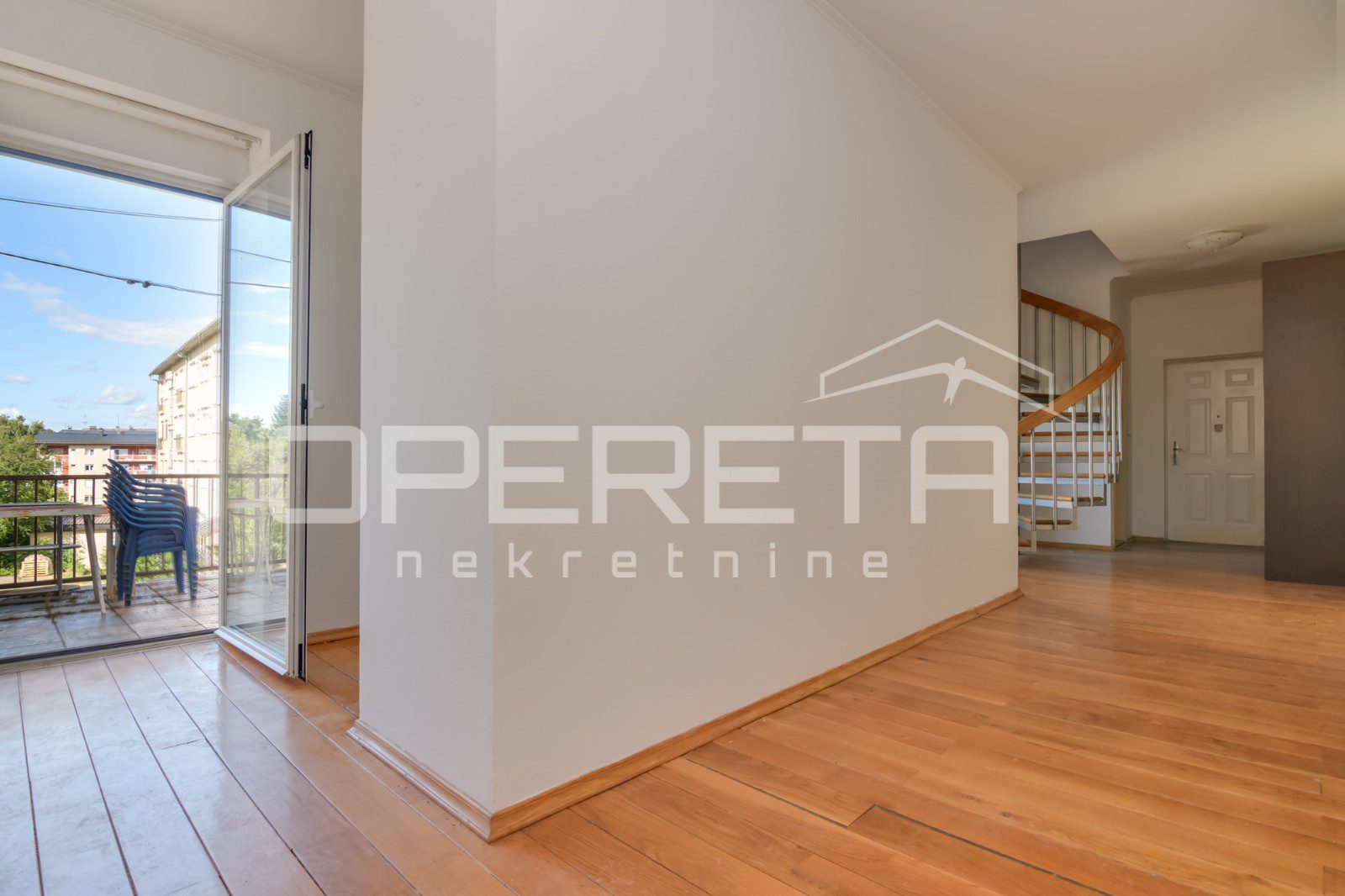 Prostran i komforan stan na 1. katu i potkrovlju zgrade u najužem centru grada. NKP prema zk 73,43 m2, SZ-JI orijentacije, prozračan i pun svjetla, razveden je na dvije etaže: na donjoj etaži nalazi se “open space” kuhinja s blagovaonicom te izlazom na prostranu terasu, dnevni boravak, hodnik i kupaonica s wc-om. Nutarnje stubište povezuje ju s potkrovljem gdje se nalaze dvije spavaće/radne sobe s velikim “walk-in” ormarom, kupaonica s wc-om i hodnik.