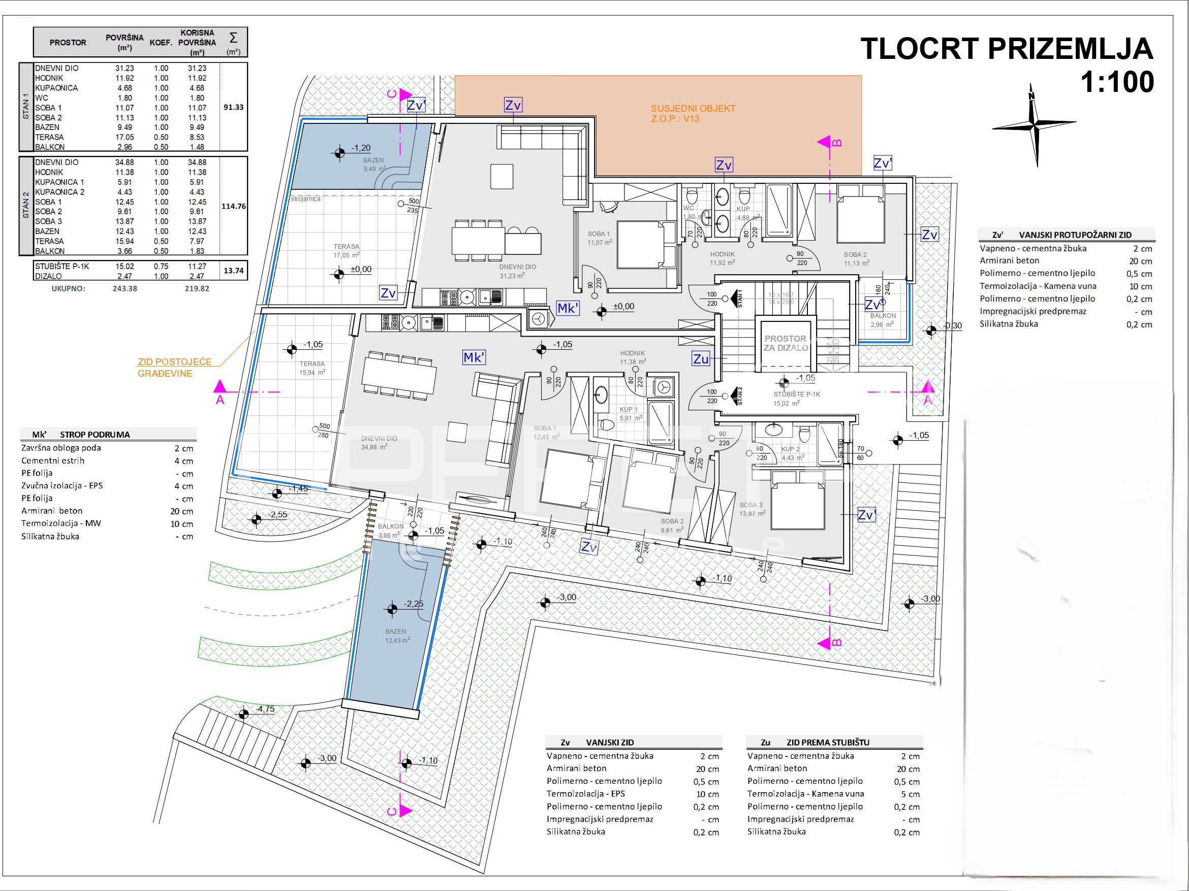 Planirani završetak izgradnje predviđen je za kraj 2025. godine. Zgrada će imati dizalo, podzemne garaže i privatne bazene na terasama svih stanova. Za gradnju će se koristiti visokokvalitetni materijali, koji garantiraju dugotrajnost, visoku energetsku učinkovitost i udobnost. Oprema uključuje podno grijanje u svim prostorijama, dizalice topline i sustav klimatizacije, osiguravajući optimalne uvjete boravka tijekom cijele godine.