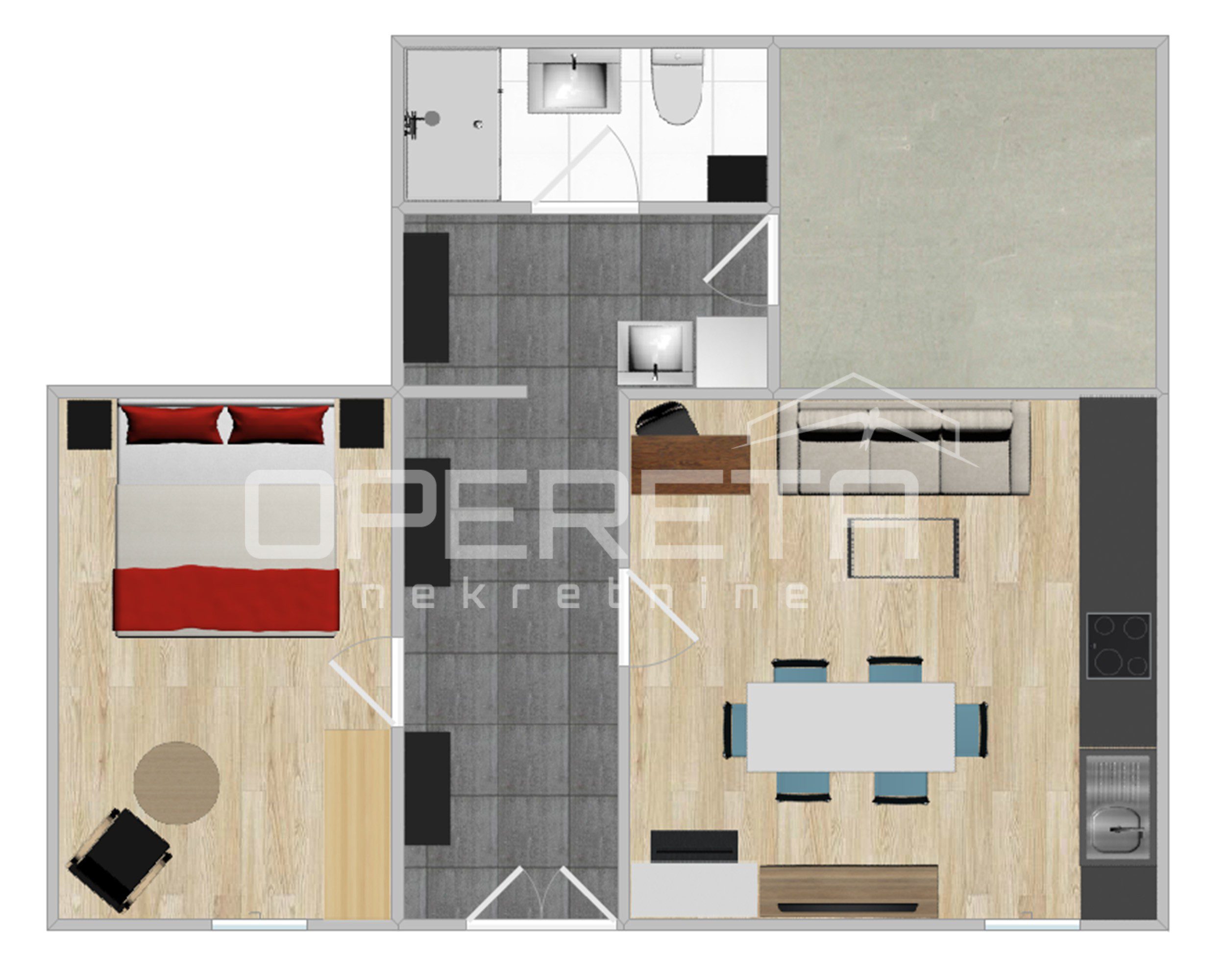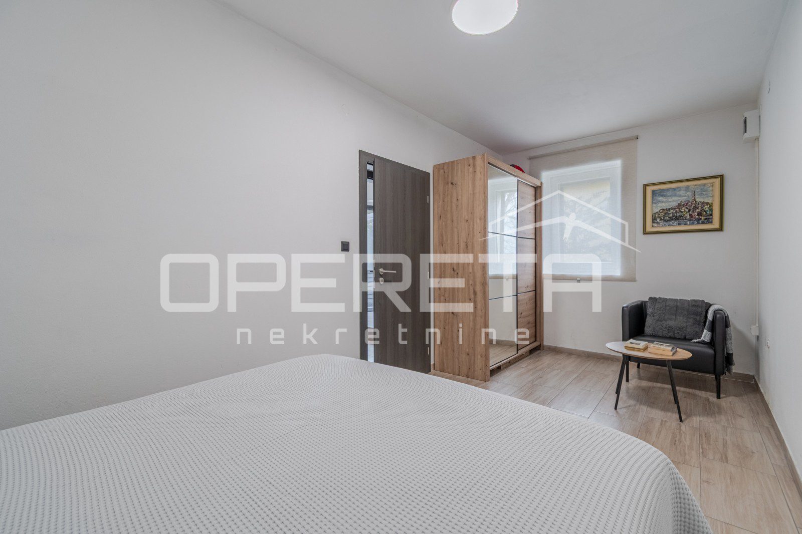 Uz veliku spavaću sobu i suvremenu kupaonicu, stan ima i praktičnu ostavu koju možete pretvoriti u radnu sobu, hobby prostor ili vinski podrum.