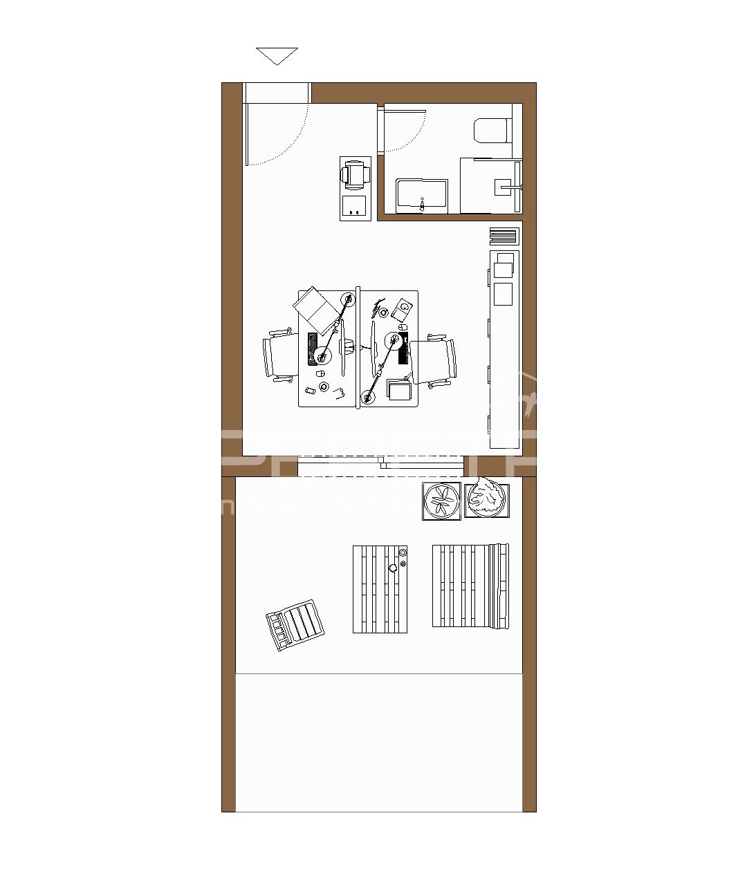 Ured se sastoji od jednog glavnog prostora površine 17 m2, WC-a i vrta veličine 16 m2.