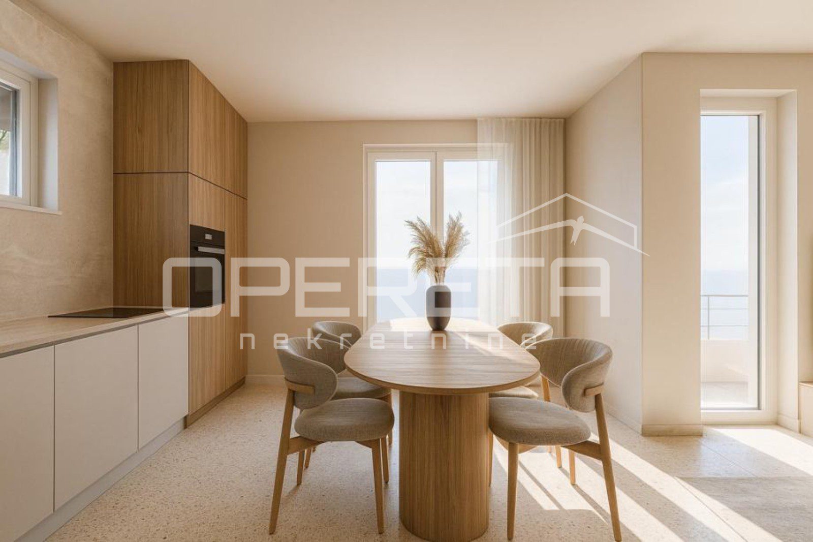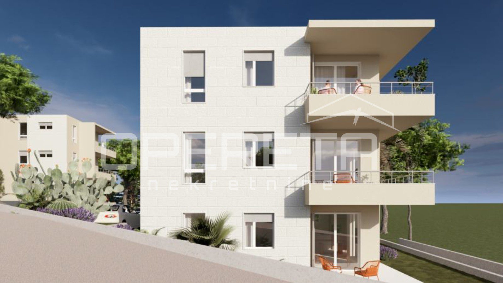 Na prestižnoj lokaciji u samom srcu Komiže u prodaji je stan u izgradnji površine 65 m2, smješten na drugom katu moderne urbane vile, s otvorenim pogledom na prirodu i crkvu svetog Nikole. Stan je osmišljen kao elegantan i funkcionalan životni prostor koji objedinjuje suvremeni dizajn i bezvremenski mediteranski karakter. Stan se sastojoi od dvije spavaće sobe, kupaonice te prostranog open space dnevnog boravaka s kuhinjom i blagovaonicom. Prodaje se u visokoj roh-bau završnoj fazi, s potpuno ugrađenim sanitarnim elementima, kvalitetnim podnim oblogama, postavljenom stolarijom, protuprovalnim ulaznim vratima i svim potrebnim priključcima, dok kuhinja i namještaj nisu uključeni, omogućujući personalizaciju interijera prema najvišim standardima. Gradnja se izvodi korištenjem vrhunskih materijala i suvremenih sustava, uključujući YTONG konstrukciju, kamenom obloženo stubište, PVC stolariju s ALU roletama i griljama, silikatnu završnu obradu pročelja s kamenim detaljima te sustav grijanja i hlađenja putem klima uređaja. Planirani završetak građevinskih radova predviđen je do 1. lipnja 2026. godine, dok su uporabna dozvola i etažiranje planirani tijekom jeseni iste godine.