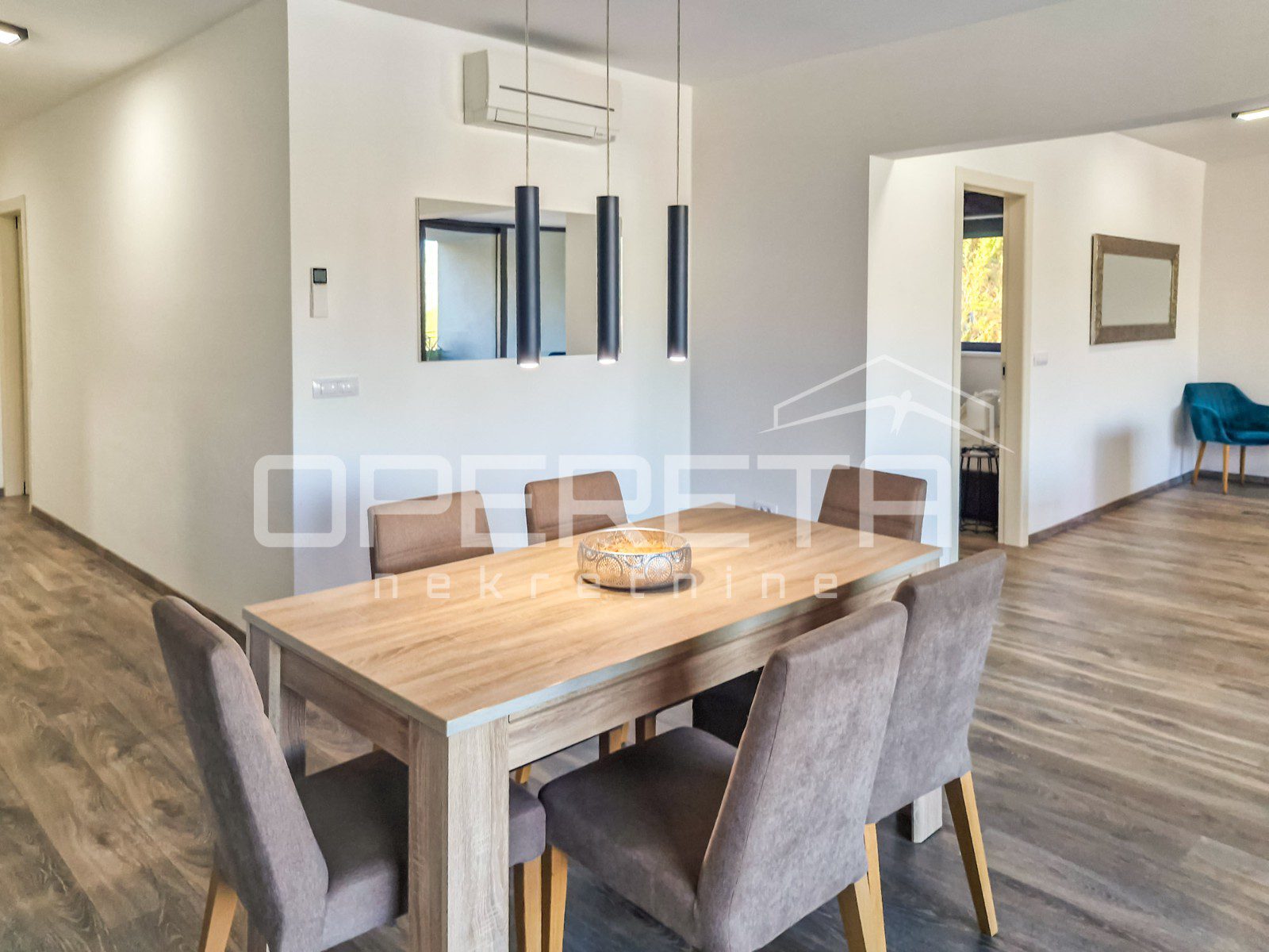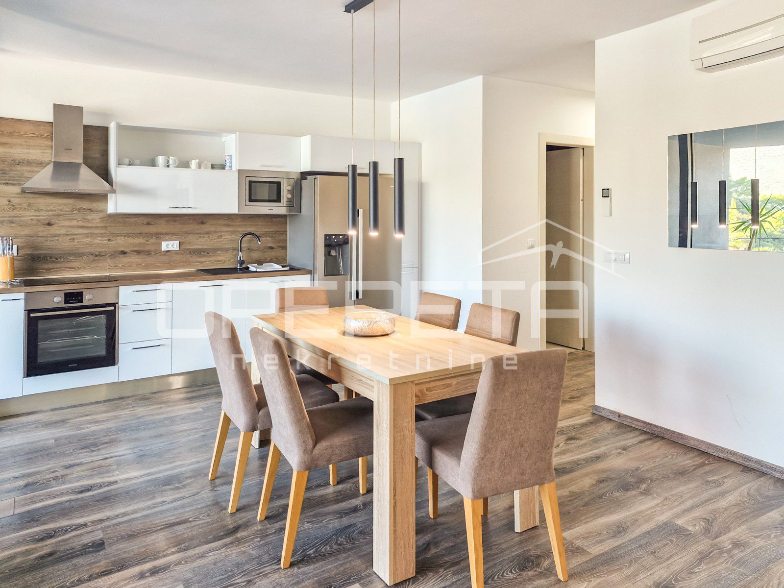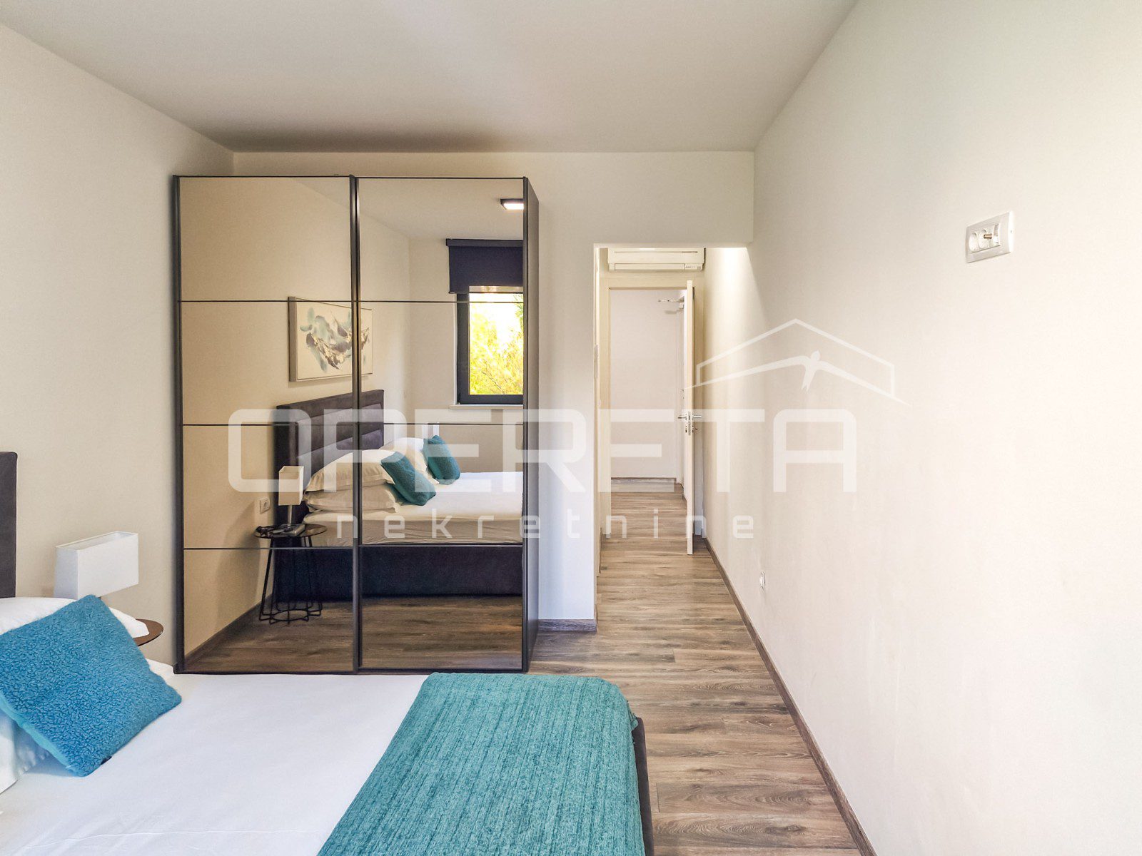 Apartman je opremljen klima jedinicama u svim sobama, što osigurava optimalne uvjete tijekom cijele godine. Osim toga, stan posjeduje vlastito garažno mjesto.