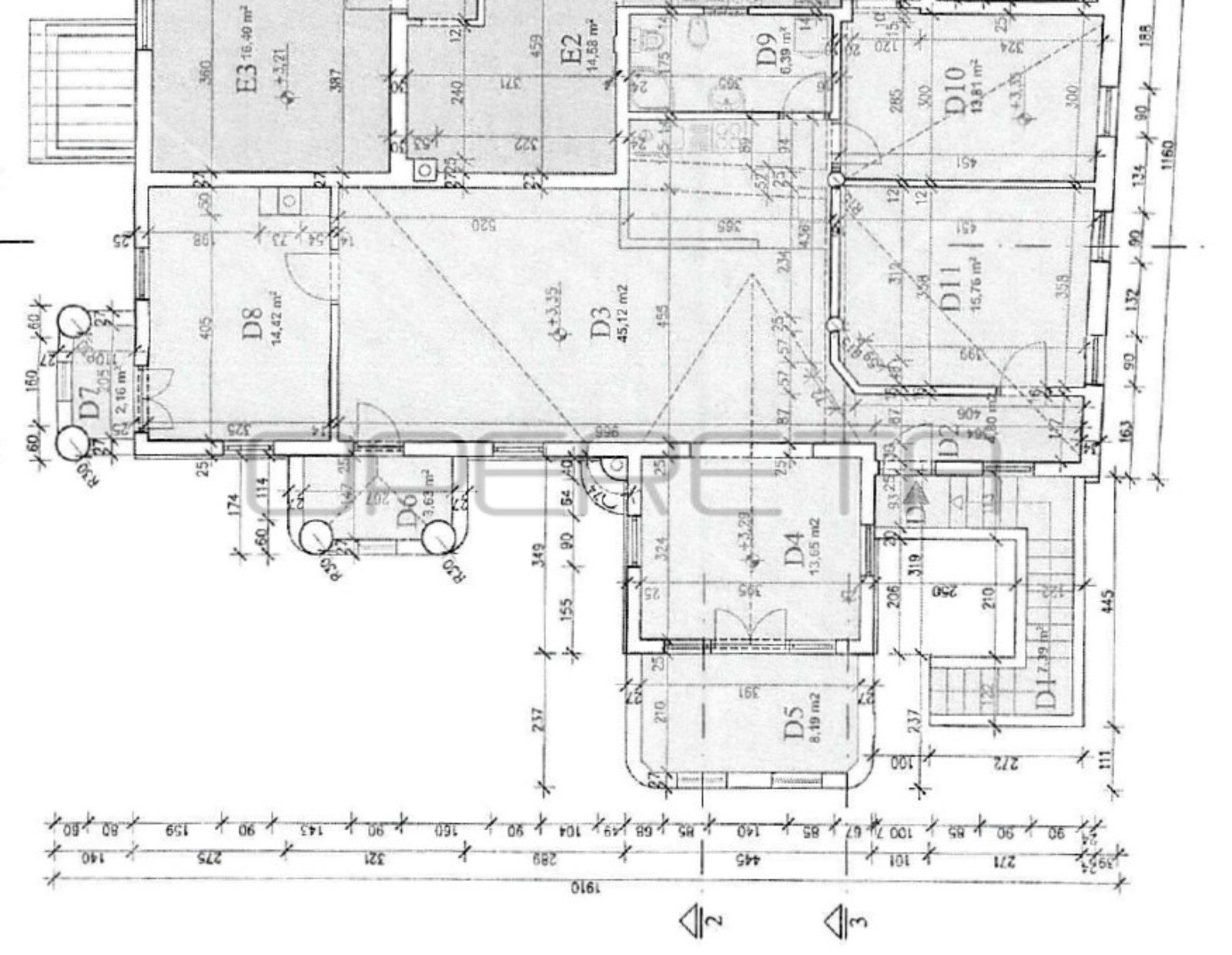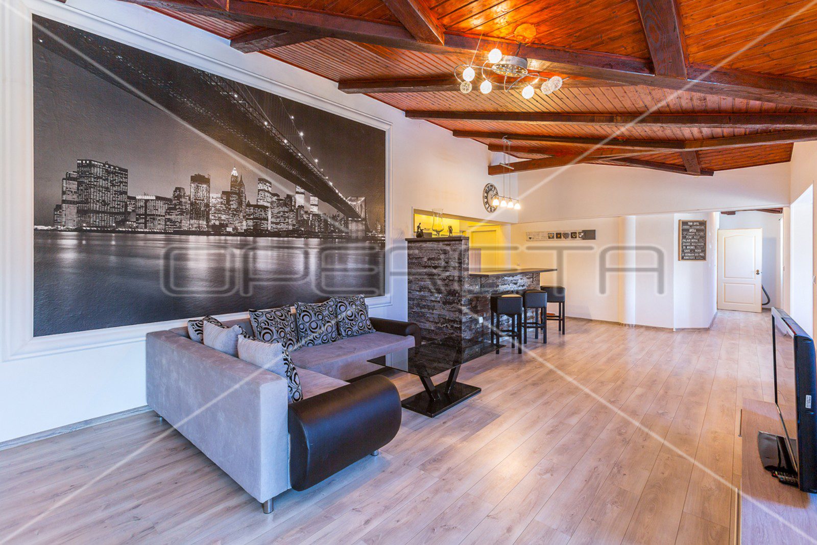 Sastoji se od hodnika, dnevnog boravka s izlazom na balkon, kuhinje, blagovaonice s izlazom na terasu, tri spavaće sobe od kojih jedna ima terasu i kupaonice.