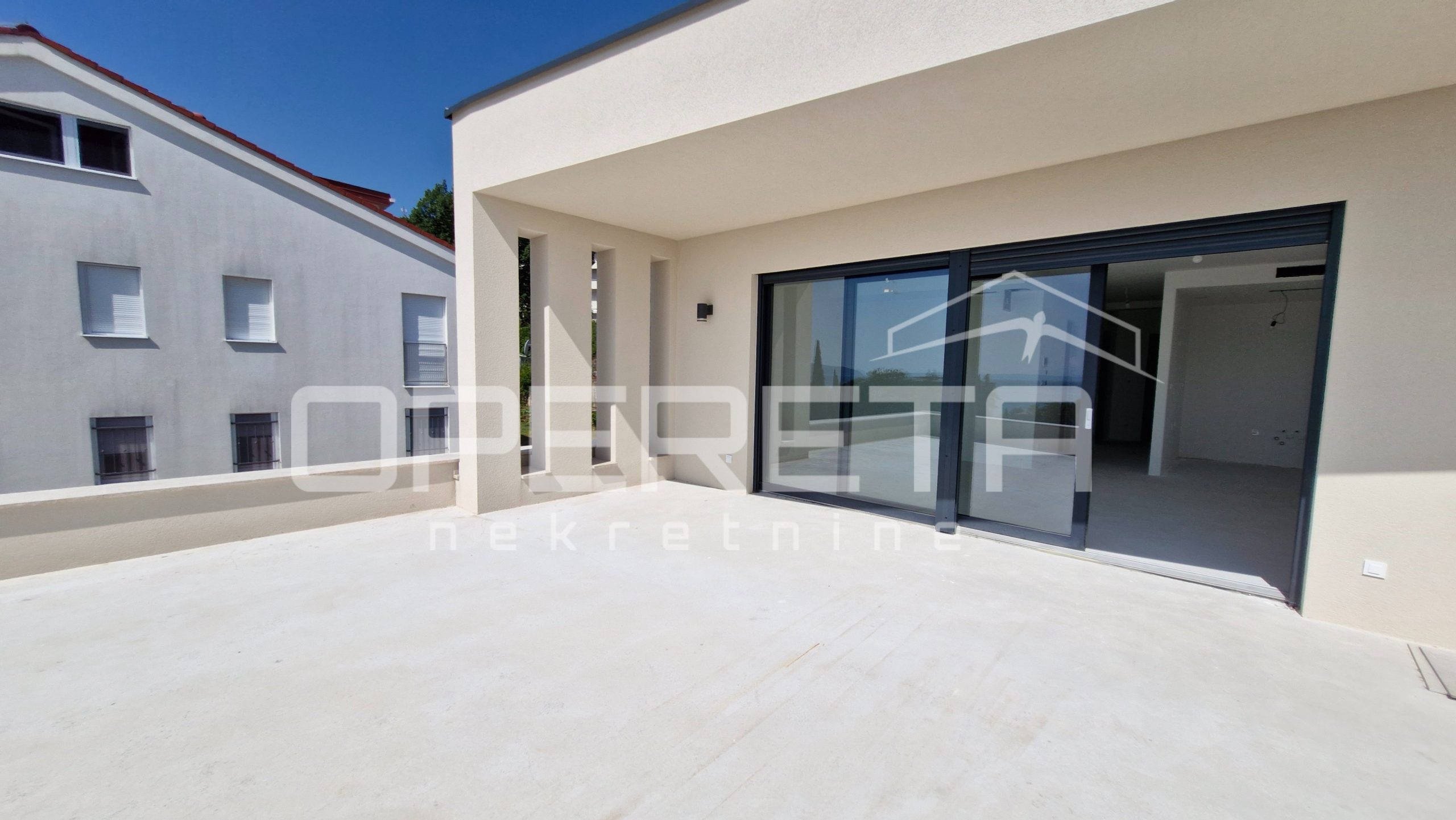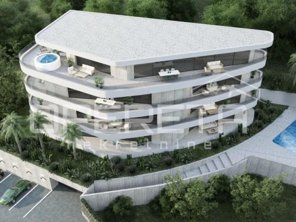 Stan ukupne neto korisne površine 140 m² prostire se u prizemlju te nudi izravan pristup vlastitoj prostranoj terasi, bazenu sa slanom vodom i sunčalištu. Panoramski pogled na more i Kvarnerski zaljev dostupan je iz dnevnog boravka i spavaćih soba, dok velike staklene stijene propuštaju obilje prirodnog svjetla i dodatno naglašavaju osjećaj prozračnosti i elegancije.