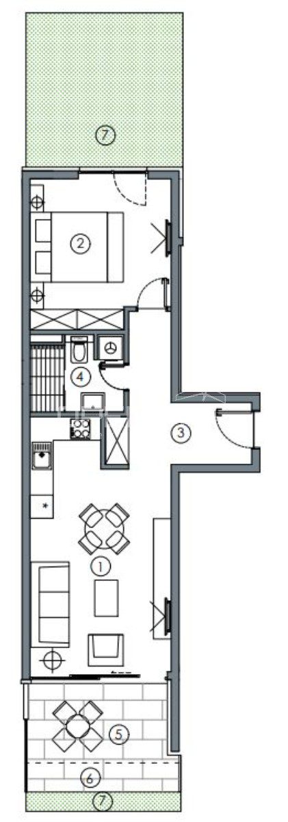 Ne samo da je stan tehnološki napredan, nego nudi i privatnost s prekrasnim pogledima na grad i more. Uređeni vrtovi i hortikultura oko zgrade stvaraju savršeni ambijent za opuštanje, a kvaliteta gradnje ovog stambenog objekta je zajamčena.
