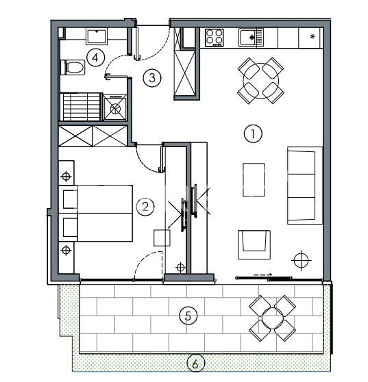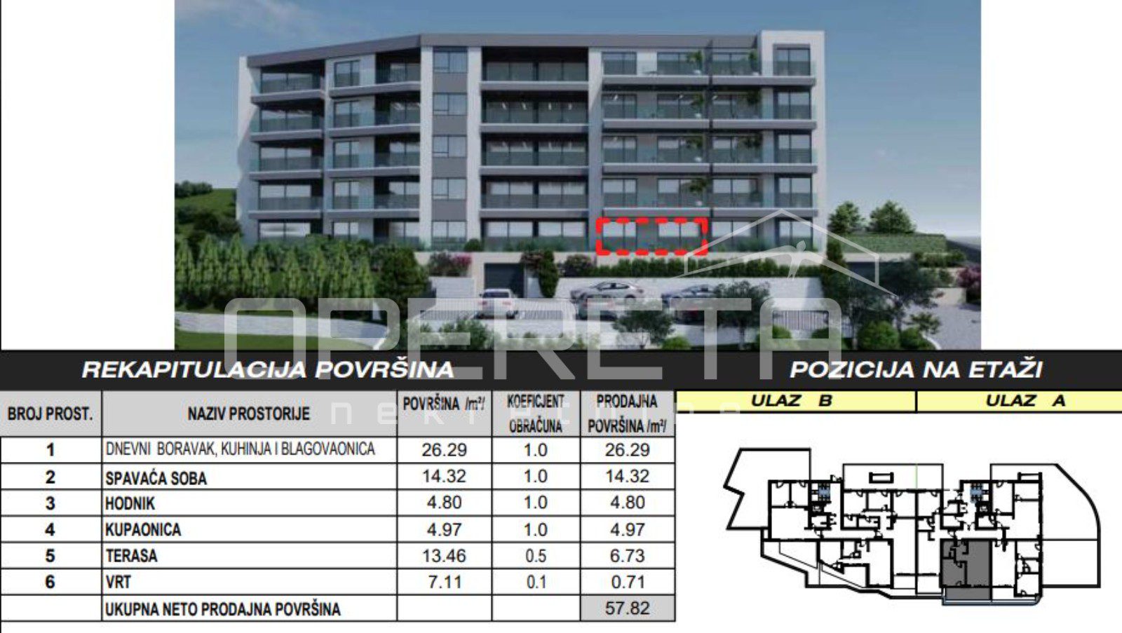 Stan A2 nalazi se u prizemlju neto obračunske površine 57,82m2, a sastoji se od: hodnika, dnevnog boravka, kuhinje i blagavaonice u open space konceptu, 1 prostrane spavaće sobe, te terase i vrta. Ovaj prostor odiše kvalitetom, modernim dizajnom i pažnjom na detalje. Svaka prostorija je pažljivo osmišljena kako bi pružila maksimalnu udobnost i funkcionalnost.