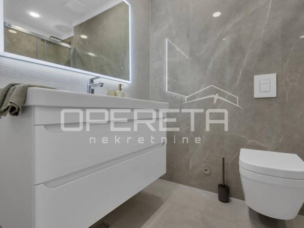 Stan se nalazi u zgradi koja je dio sofisticirane arhitekture, gdje su ugradbeni materijali i tehnologije kombinirani kako bi omogućili vrhunski životni standard. Od termoizolacije i vrhunske zvučne izolacije, do preciznih završnih detalja koji čine život u ovom stanu posebnim.
