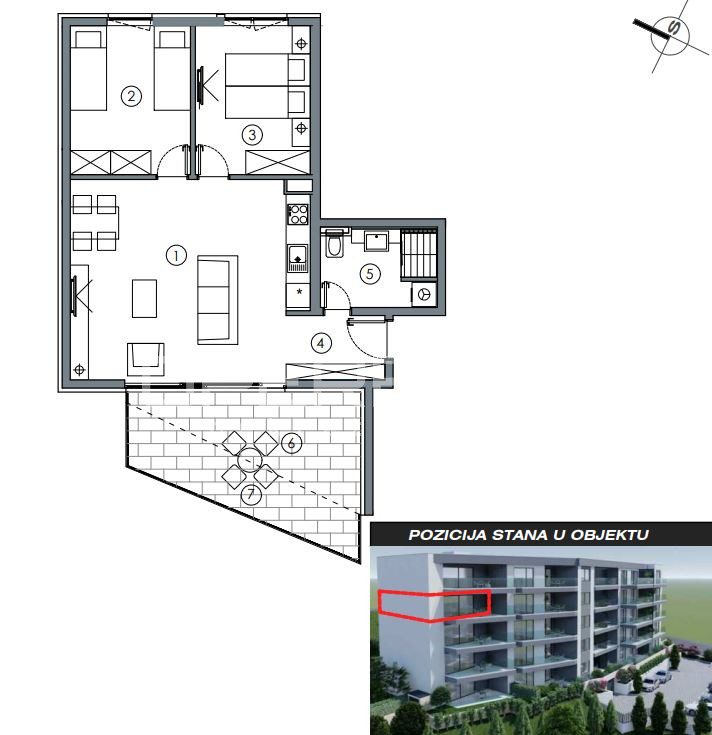 Ne samo da je stan tehnološki napredan, nego nudi i privatnost s prekrasnim pogledima na grad i more. Uređeni vrtovi i hortikultura oko zgrade stvaraju savršeni ambijent za opuštanje, a kvaliteta gradnje ovog stambenog objekta je zajamčena.