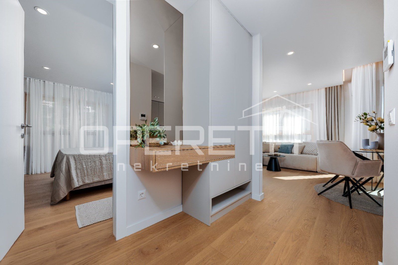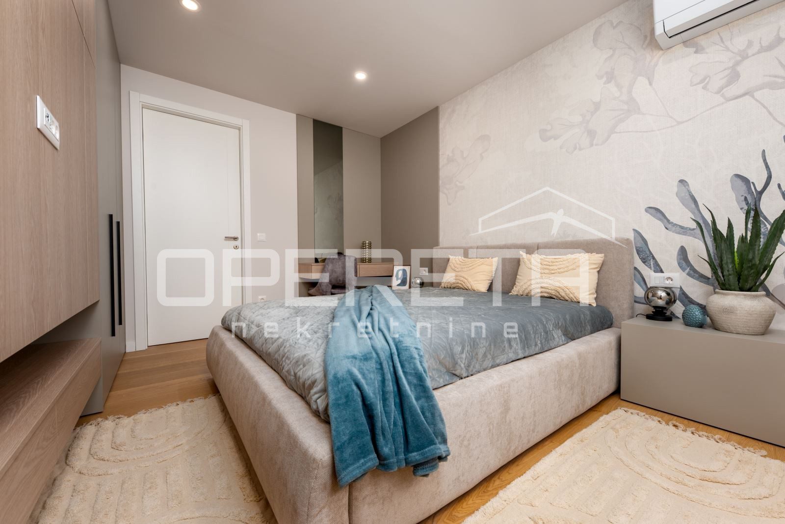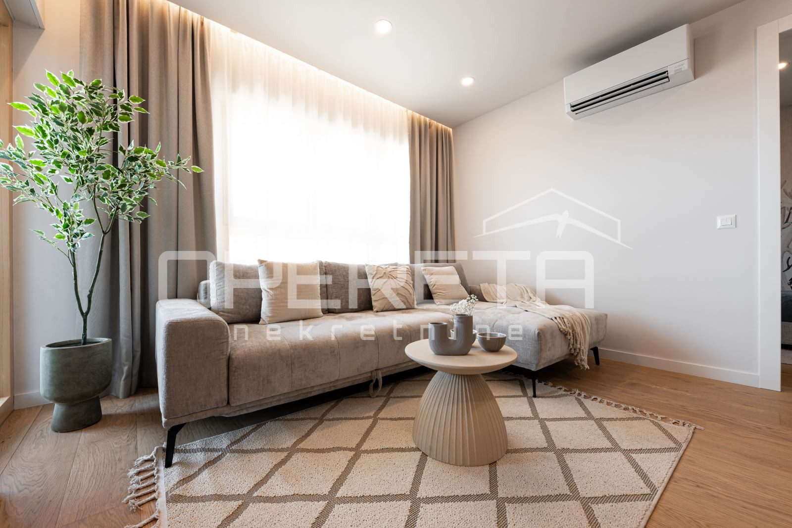 Osvježite svoj svakodnevni život luksuznim unutarnjim prostorima, s podnim grijanjem u kupaonicama, visokokvalitetnim parketima u dnevnim boravcima, i modernim kuhinjskim pločicama, koje se prilagođavaju vašim željama. Svaka soba je opremljena s klima uređajima, a prostor je bogat LED rasvjetom koja stvara ugodnu atmosferu. Svaka spavaća soba i dnevni boravak imaju priliku za personalizaciju rasvjetnih i električnih instalacija, čineći boravak u stanu iznimno funkcionalnim.
